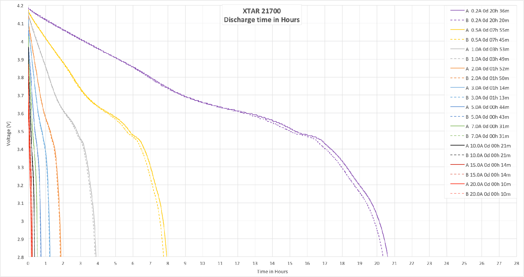 Again, note the consistency! Also note the legend on this chart – the actual Ah is listed for each individual run. Took a little bit of Excel magic, but I think it’s worth it.