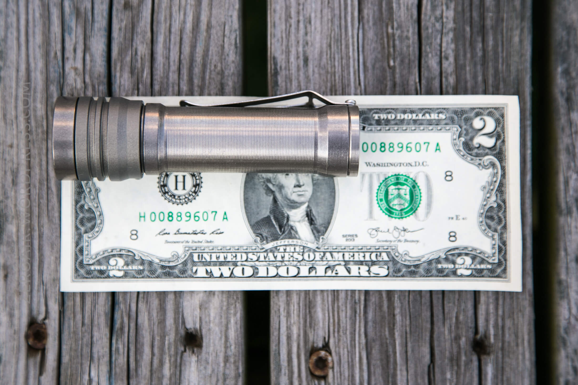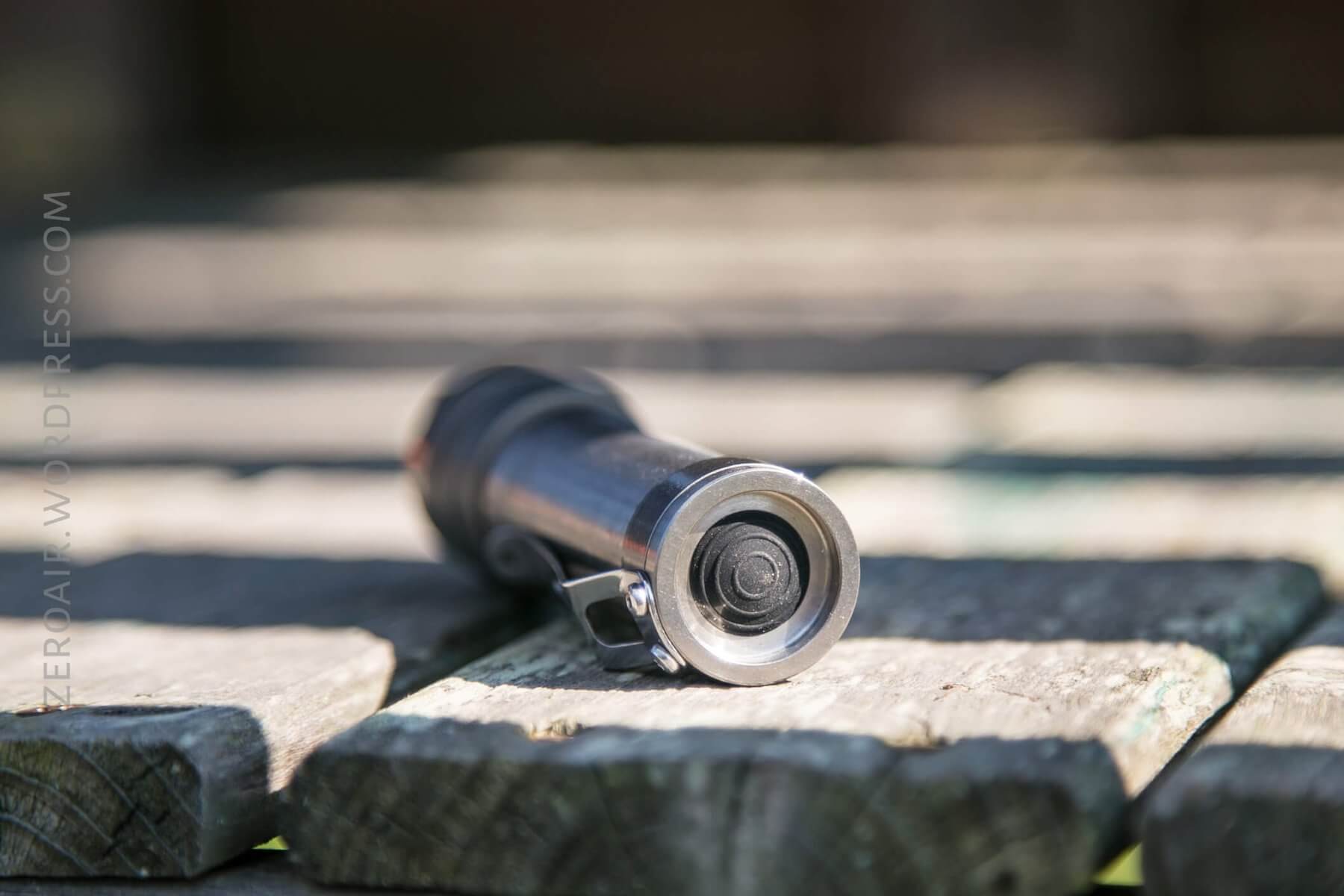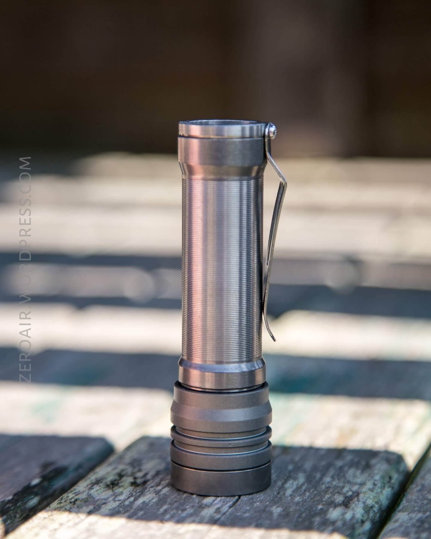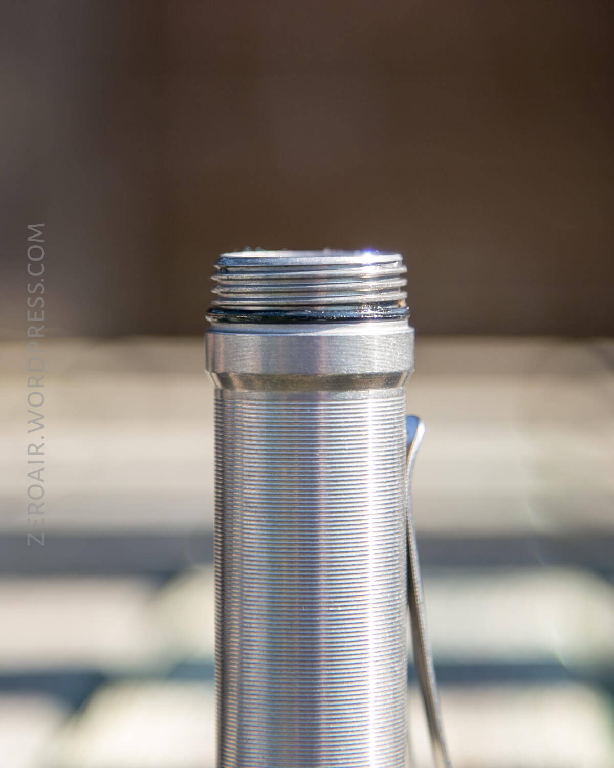 There’s a pocket clip included with and attached to the light. It’s a steel clip (not stainless, at least not the non-magnetic kind). The clip is held on by two Allen screws and is easily removable. It’s worthwhile to remove the clip just to see how little clearance there is for the screw holes and the bottom edge of the tailcap. Much less than 1mm. But it holds well, of course. Strange that on an otherwise fully titanium [alloy] light, there’s a steel clip. ¯(ツ)/¯ Titanium clips are available, and wonderful, and would have been a nice touch.