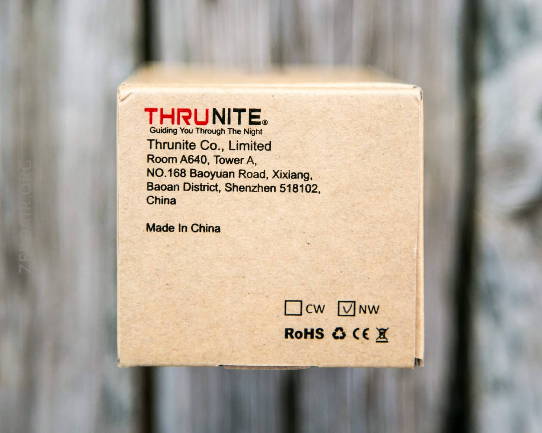 The light ships in Thrunite’s standard cardboard box.
