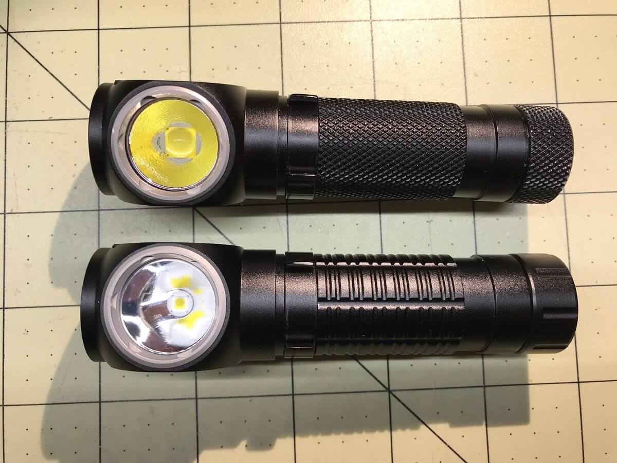 And one more comparison, that I only made after the official shots were taken: Yes, this light has practically the same host as the TH30. There are a few updates, but essentially, the light is the same. Between the two, I’d guess the TH30 would handle heat better, and the tailcap has a better grip for unscrewing the light, but such are advancements, I suppose. Granted, they’re different lights – the TH30 is more of a “wall of light” whereas the TH10 V2 is built for a more throwy beam. They make a great set, to be sure. (And you won’t confuse them in hand.)