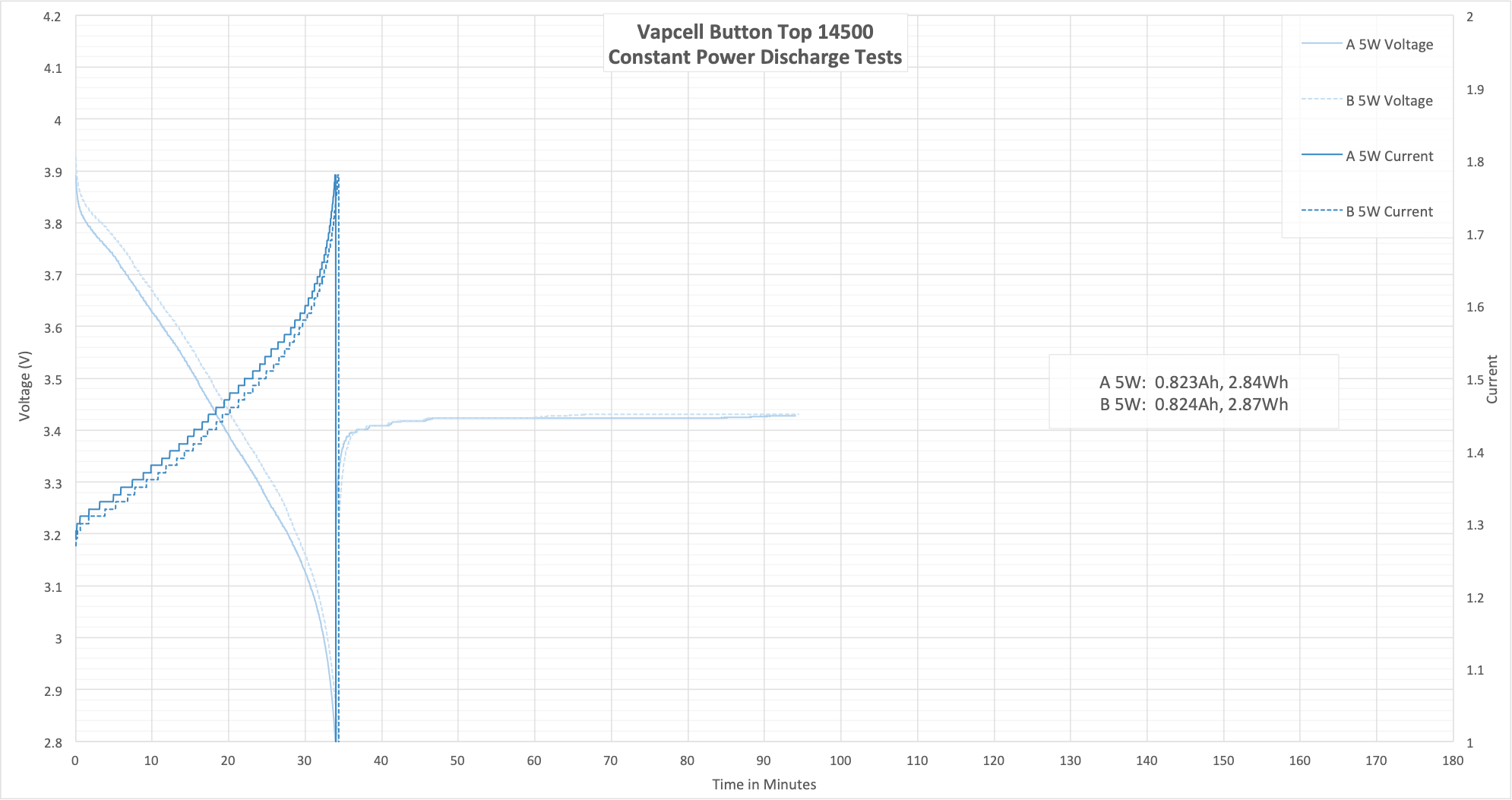 The Vapcell 14500 Button Top Lithium-ion cells aren’t on the official site yet. But the flat top can be viewed here. I’m confident that the specifications are the same.
