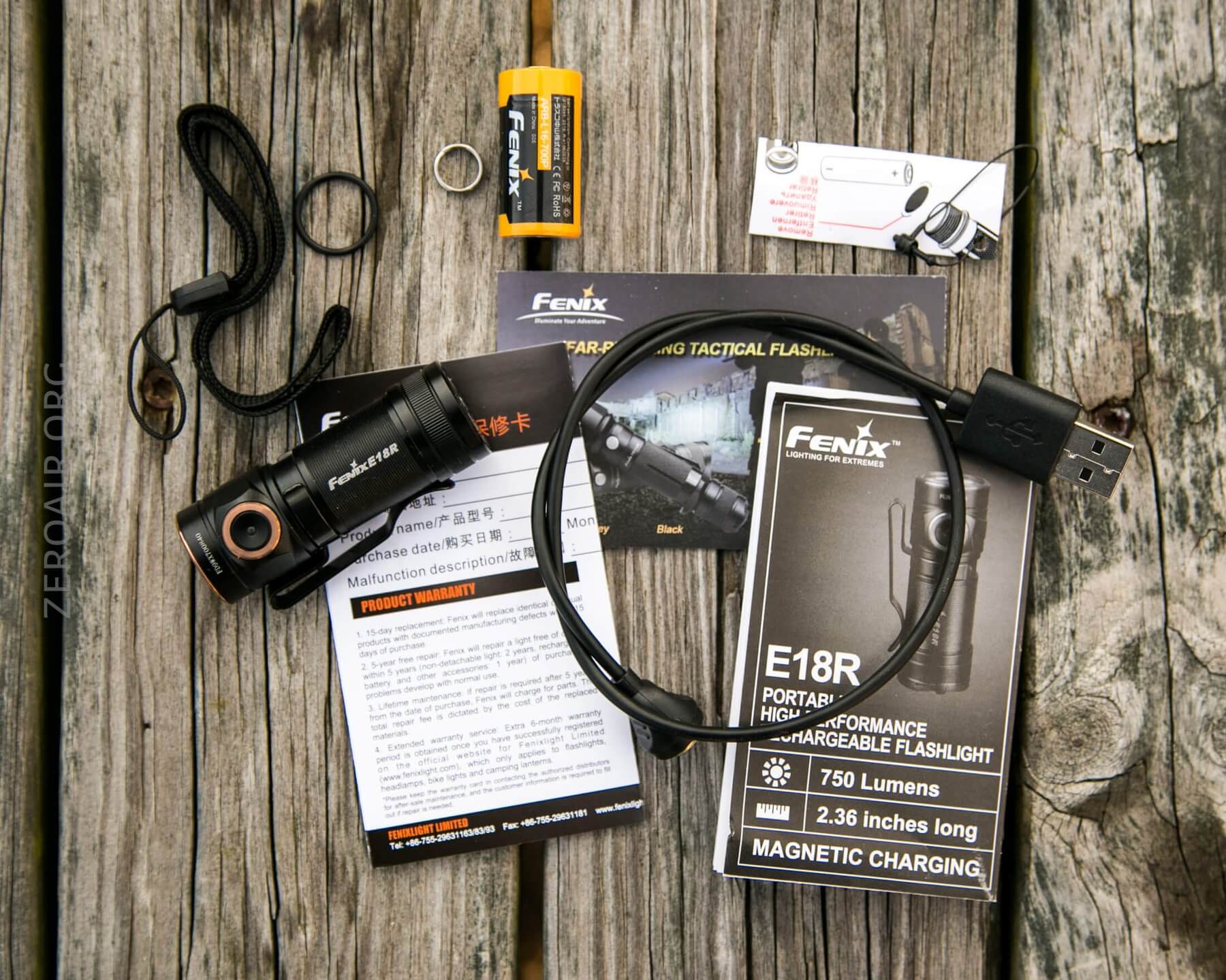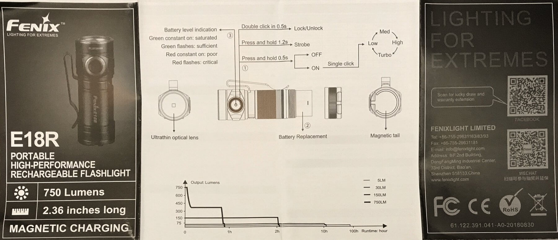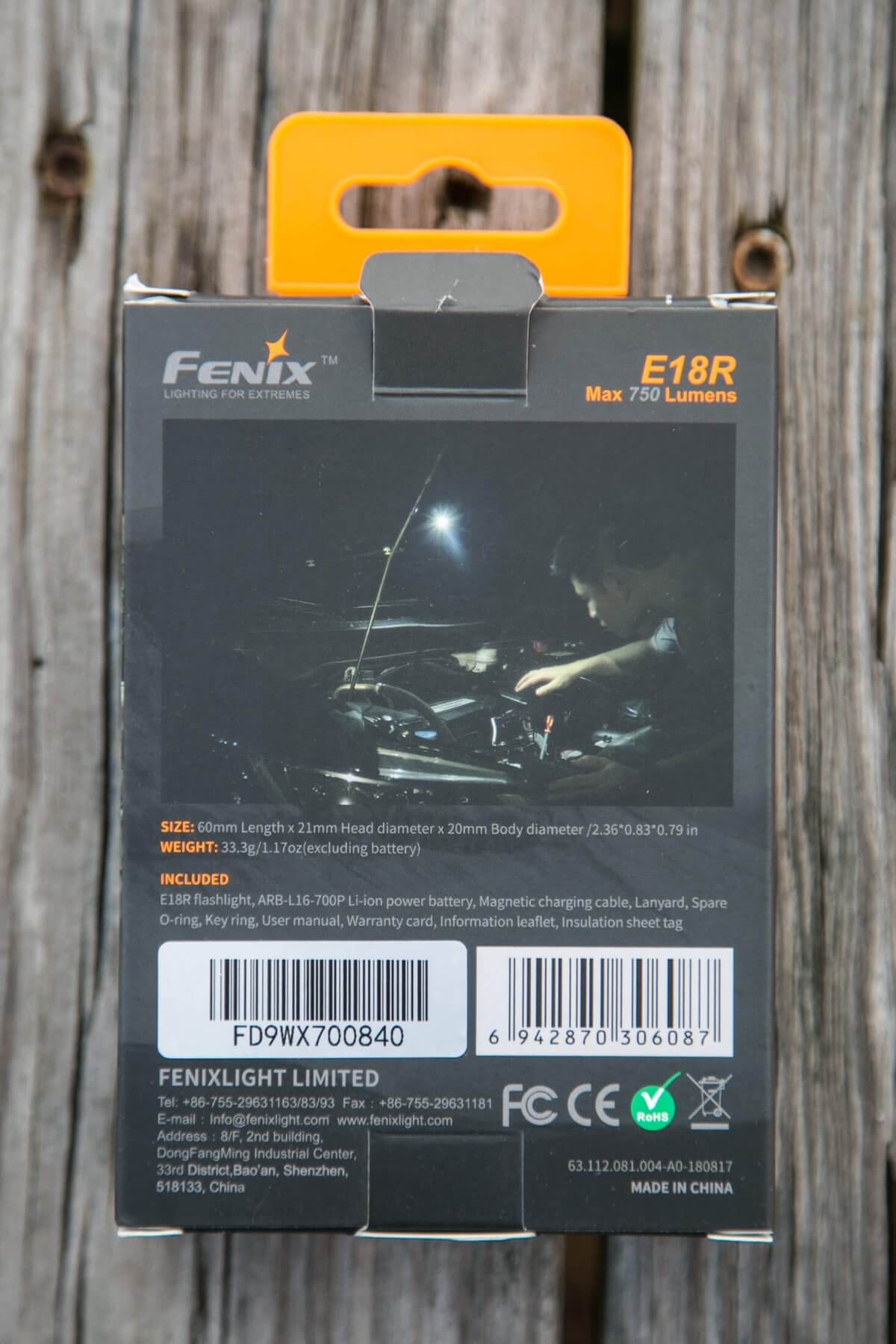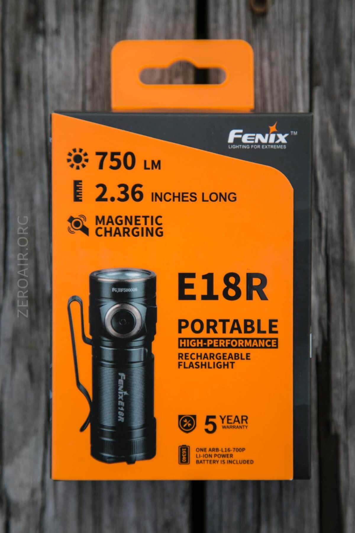 The E18R comes in a flip-open display box with the great colors of Fenix (black and orange).