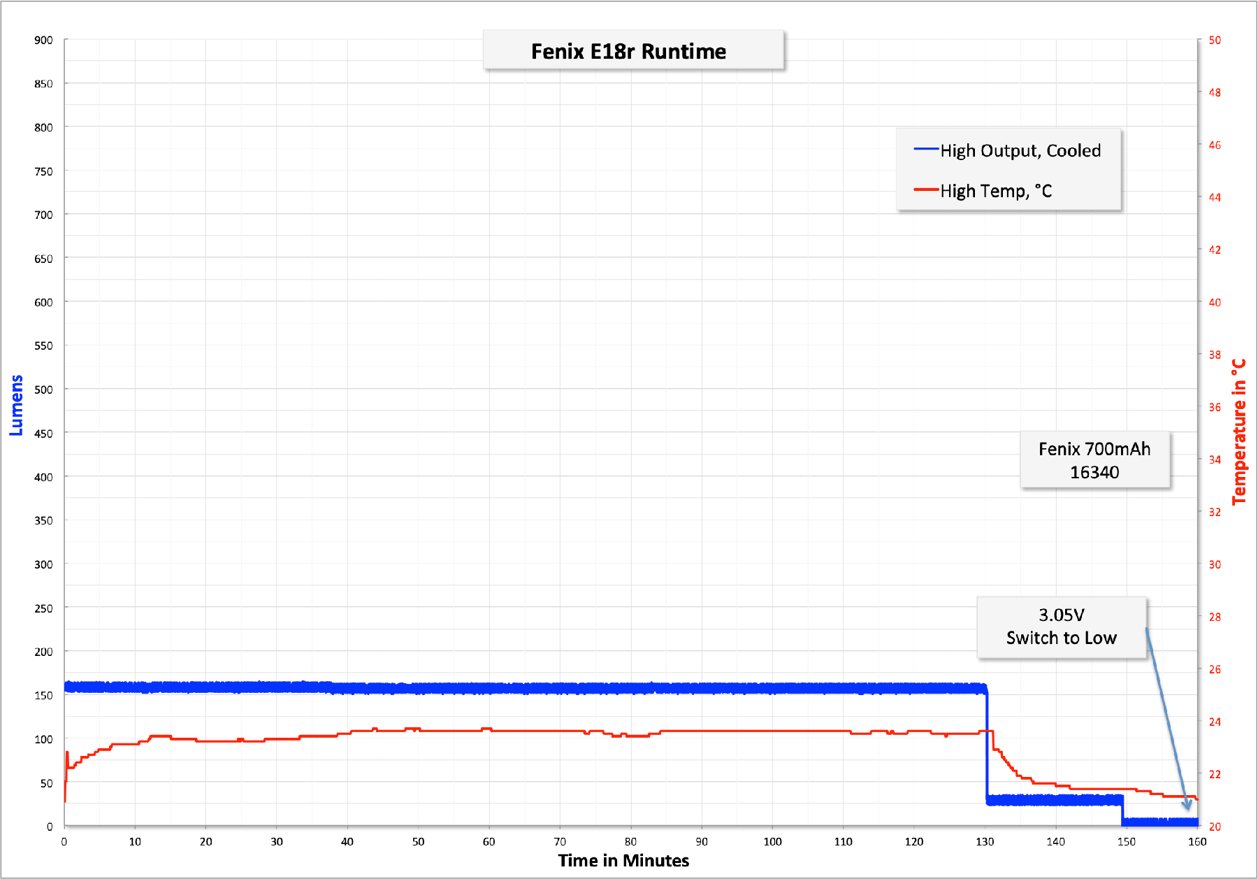 The high output is very stable for most of the claimed runtime of 2h35m.