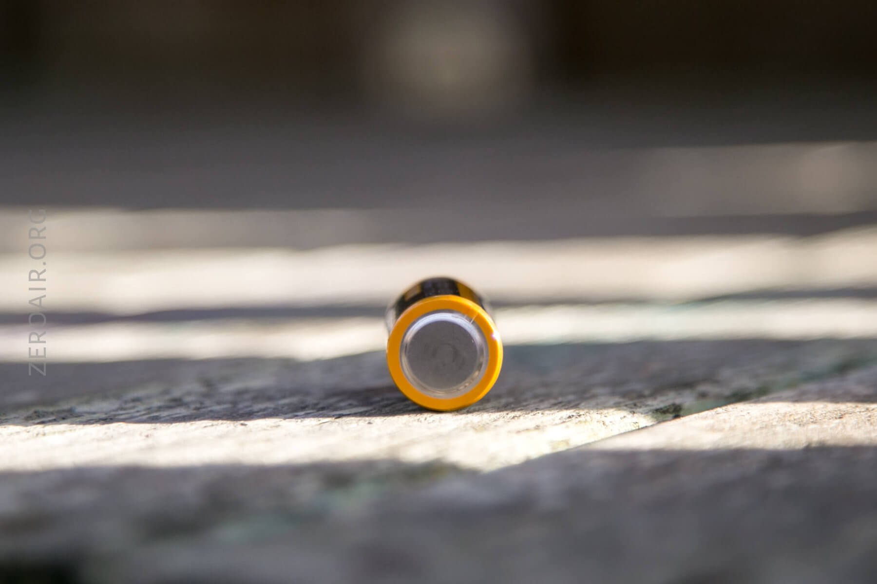 The E18R is powered by a single 16340. Fenix includes one in the package – a Fenix-branded 700mAh cell. It’s a regular old 16340 – not proprietary. It is a button top. I have a flat top unprotected 16340 floating around my house somewhere (um… yikes?), but I can’t lay my hands on it to test if flat-top cells will work. I do not think they will, just based on the setup of the positive terminal inside the light. I’d probably lean toward just using the included cell or another button top.