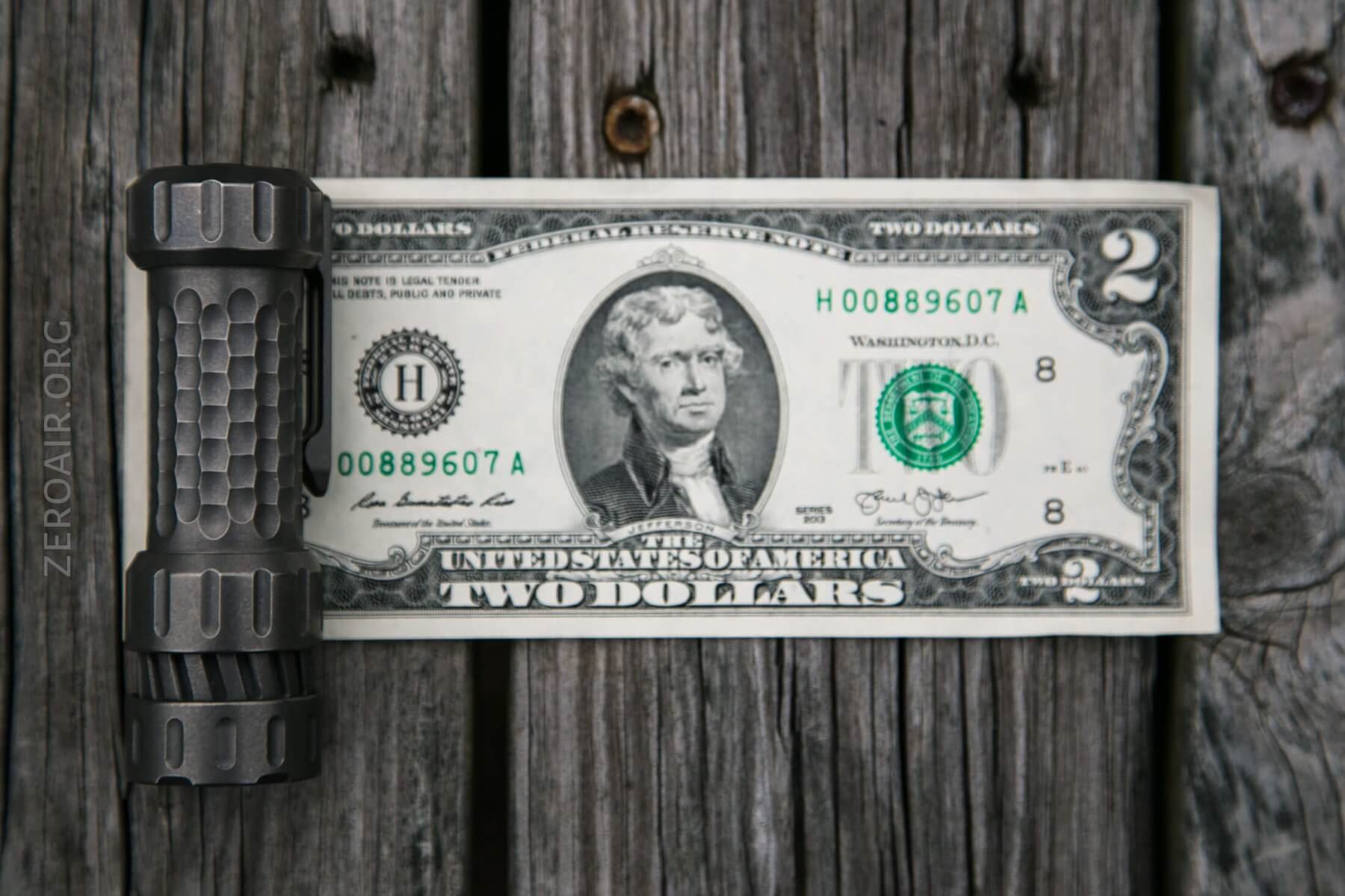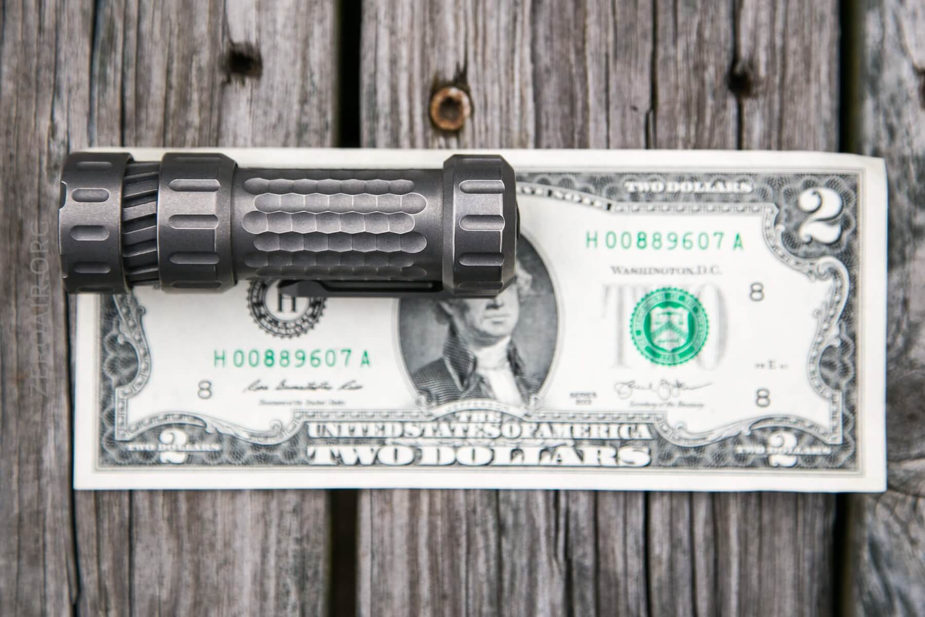 There is just one metal option (titanium), but it’s available in two finishes. Stonewash (seen here) and a “black gold” (TiN (Titanium Nitride Coated) and Black PVD)). The black gold may be slated for later release (and oh how I wish it were black orange!). The stonewash version has two options, too: Lite and Turbo. The Lite is fairly non-specific, but the Turbo (what I have here) is an H17f driver. The lights are the same otherwise.