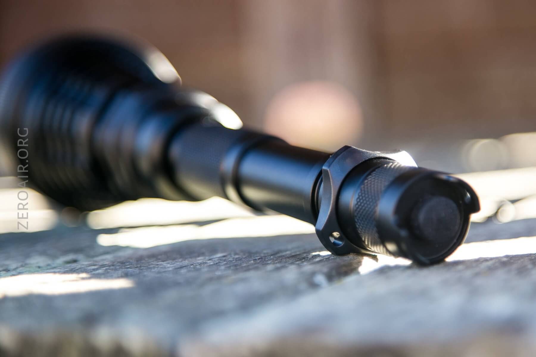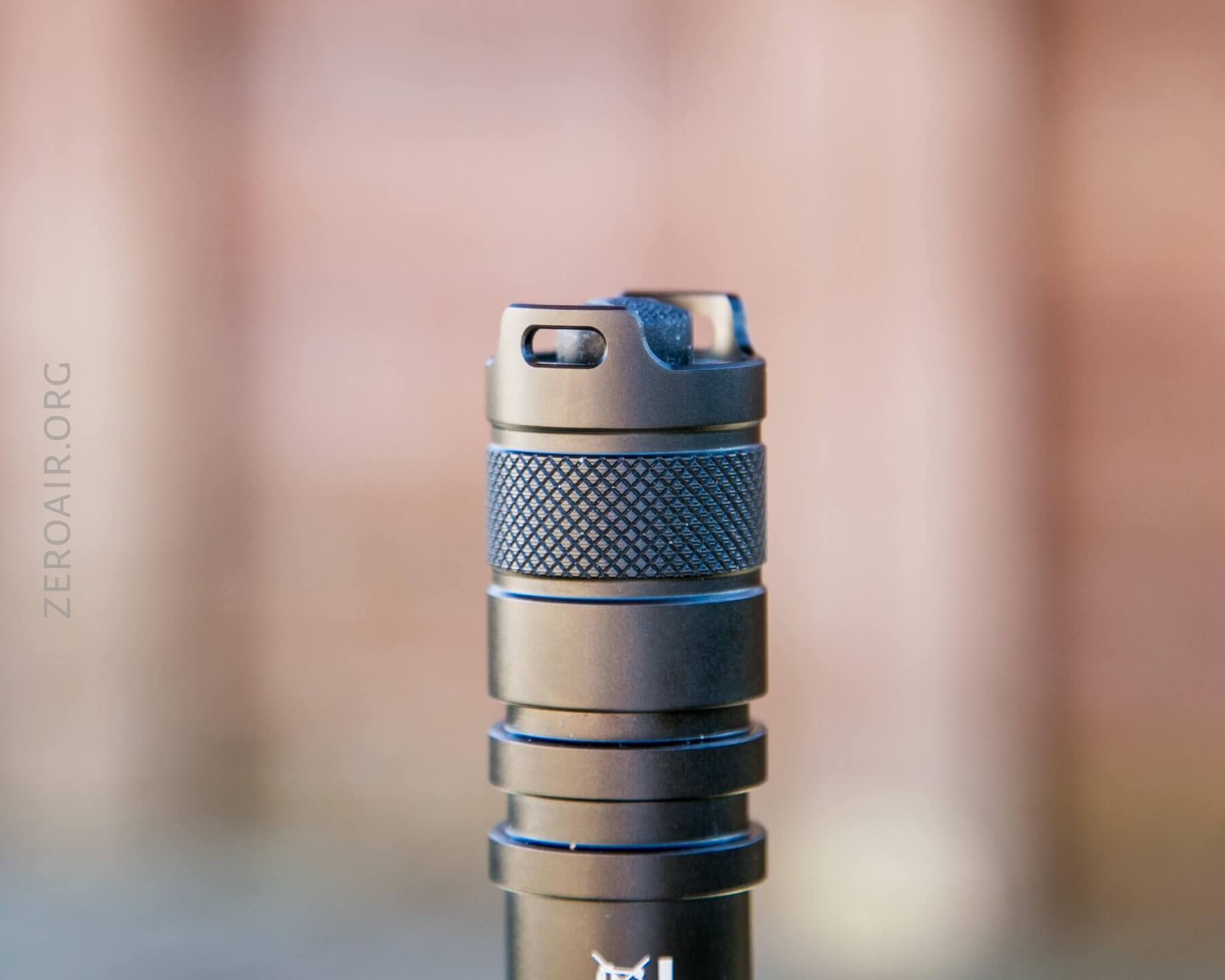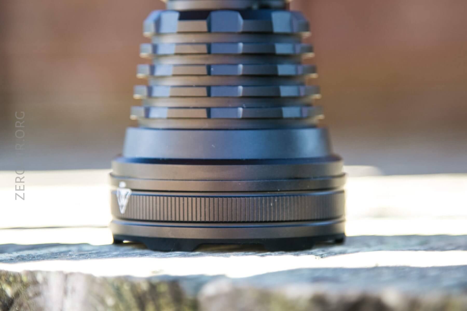 The knurling is my favorite type – a diamond pattern with a flat top. There are a couple of places with knurling – only and exactly where you’d need it. The tailcap has a little bit of knurling, and the body, just where you’ll twist to drop out of turbo, has a bigger patch. The center of the cell tube is free of knurling but has a couple of rings for added grip.