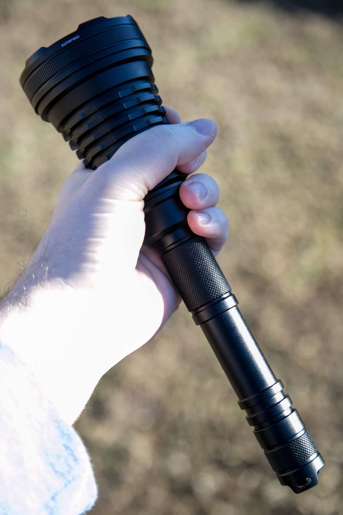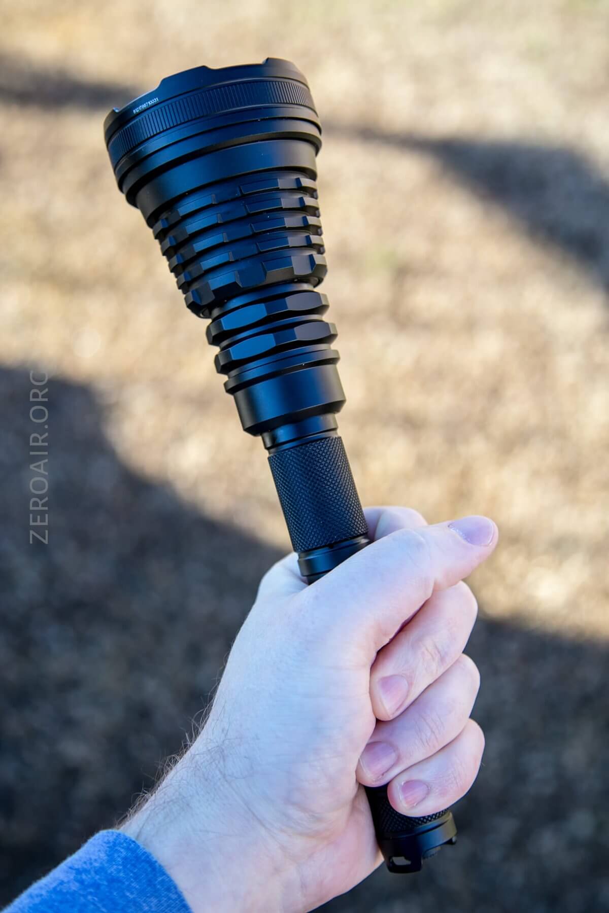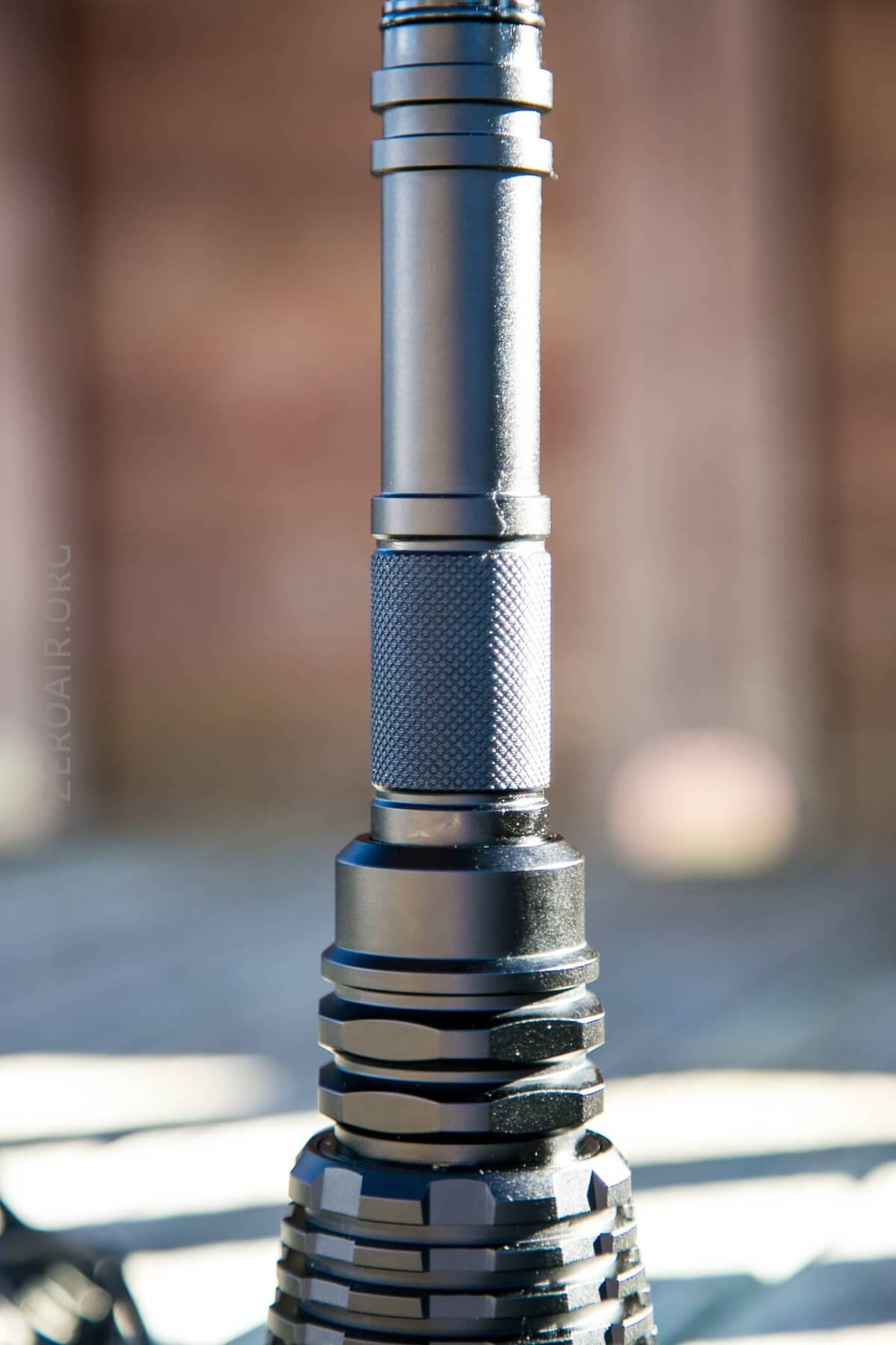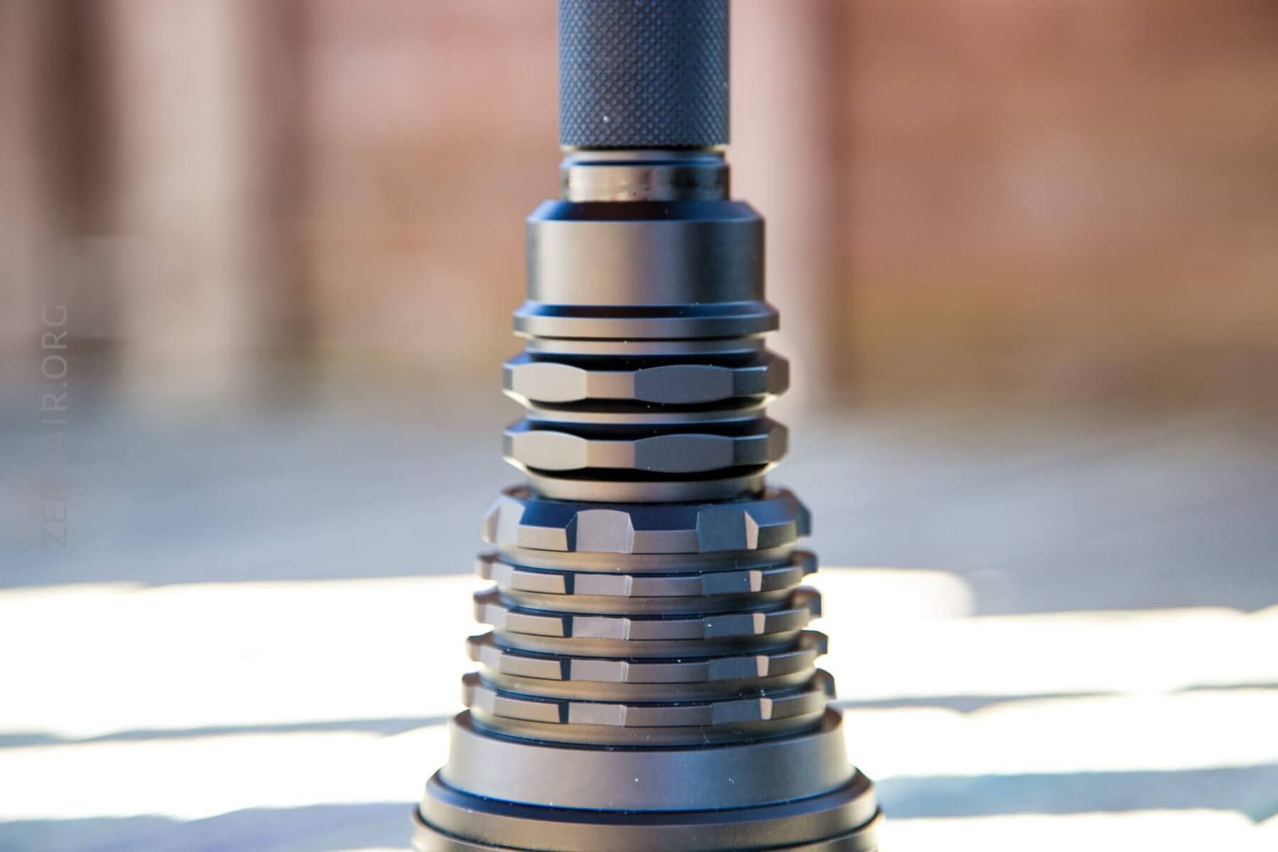 The knurling is my favorite type – a diamond pattern with a flat top. There are a couple of places with knurling – only and exactly where you’d need it. The tailcap has a little bit of knurling, and the body, just where you’ll twist to drop out of turbo, has a bigger patch. The center of the cell tube is free of knurling but has a couple of rings for added grip.