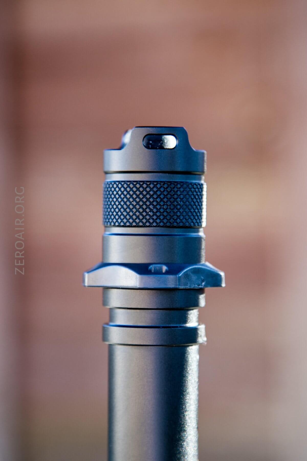 The twist area for the two modes is generous. Fully tightened is Turbo. About a quarter turn switches to the second mode. The second mode is active in 3/4 to 1 full twist. It’s possible to confuse the shroud that allows access to the charge port with the twist parts for the UI, but even just a little practice will clear that up.