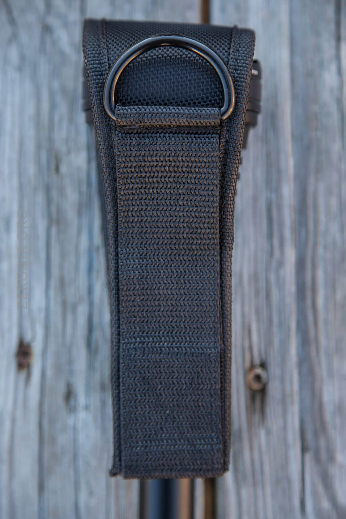 A nylon pouch is included, and most likely will be the primary means for carrying this light. It’s a nice pouch, with bezel-up only carry. The D-ring on the back is an actual metal ring, and actually a D ring.