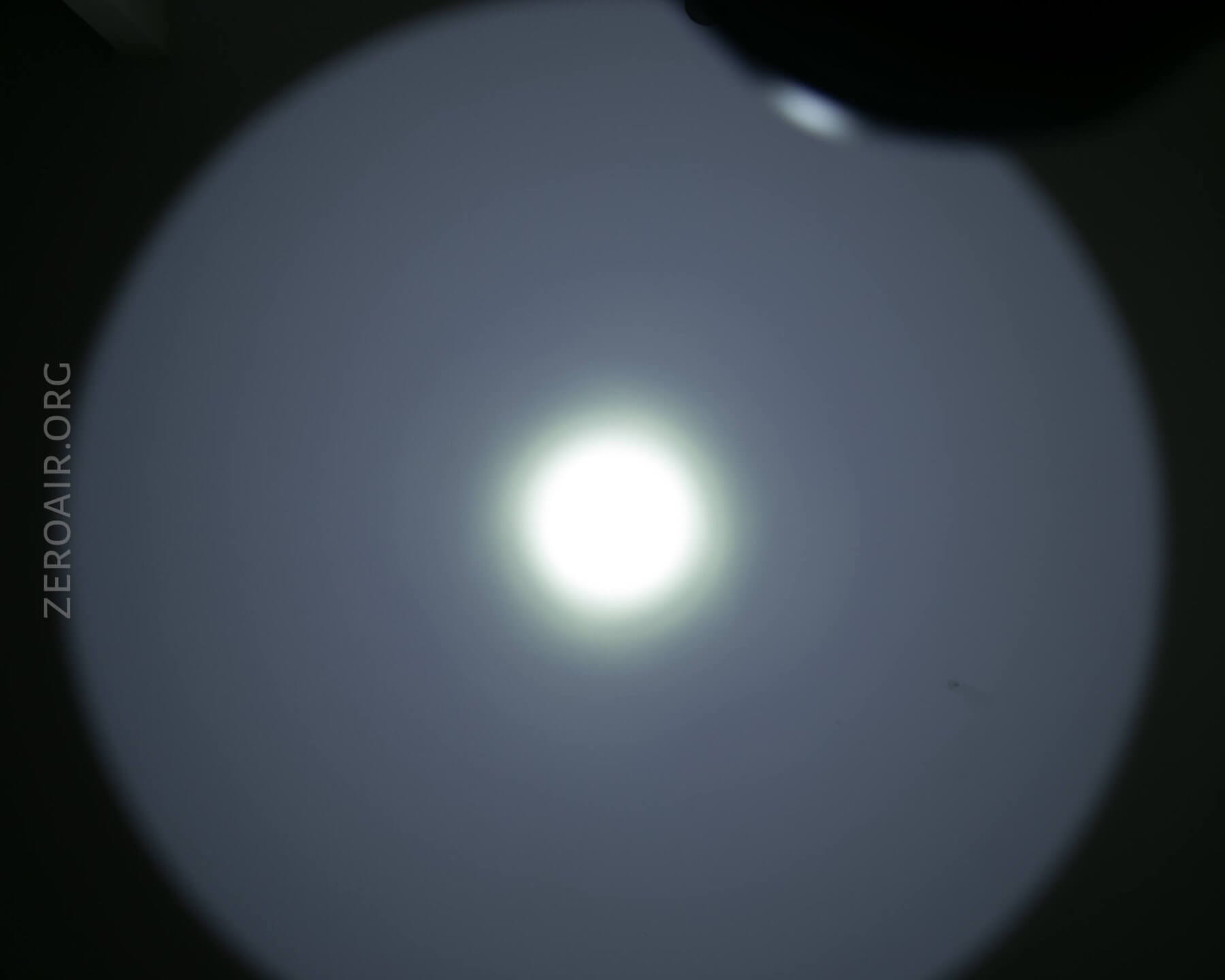 The emitter is a Cree XP-L HI. The XP-L HI is one of my favorite emitters (ok, maybe my singular favorites?). It’s a perfect choice for this light. Another reasonable choice would have been a Cree XHP35 HI, especially since the two cells are in series, and the driver seems to regulate the Watts very well anyway. The reflector is smooth.