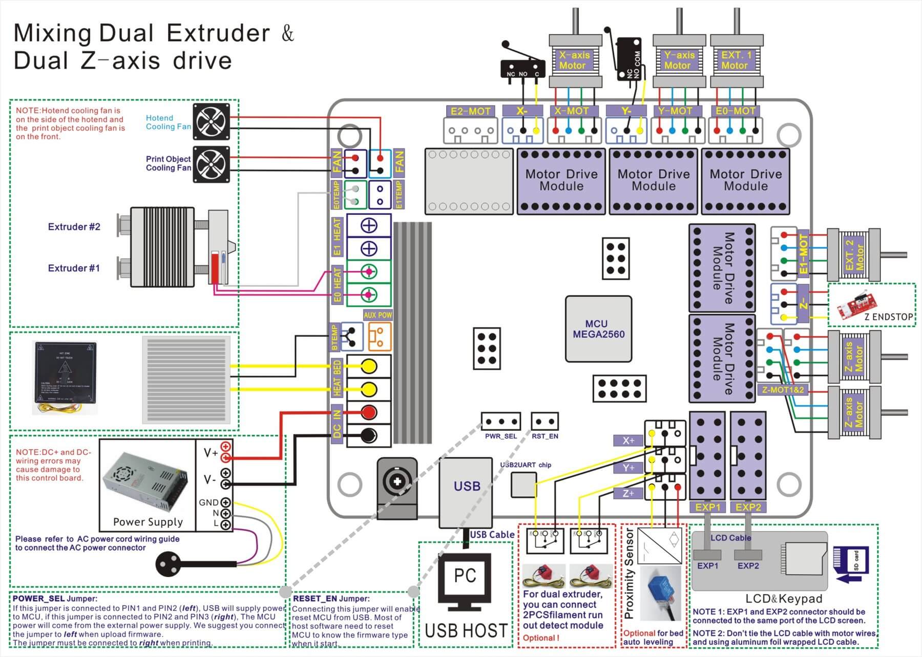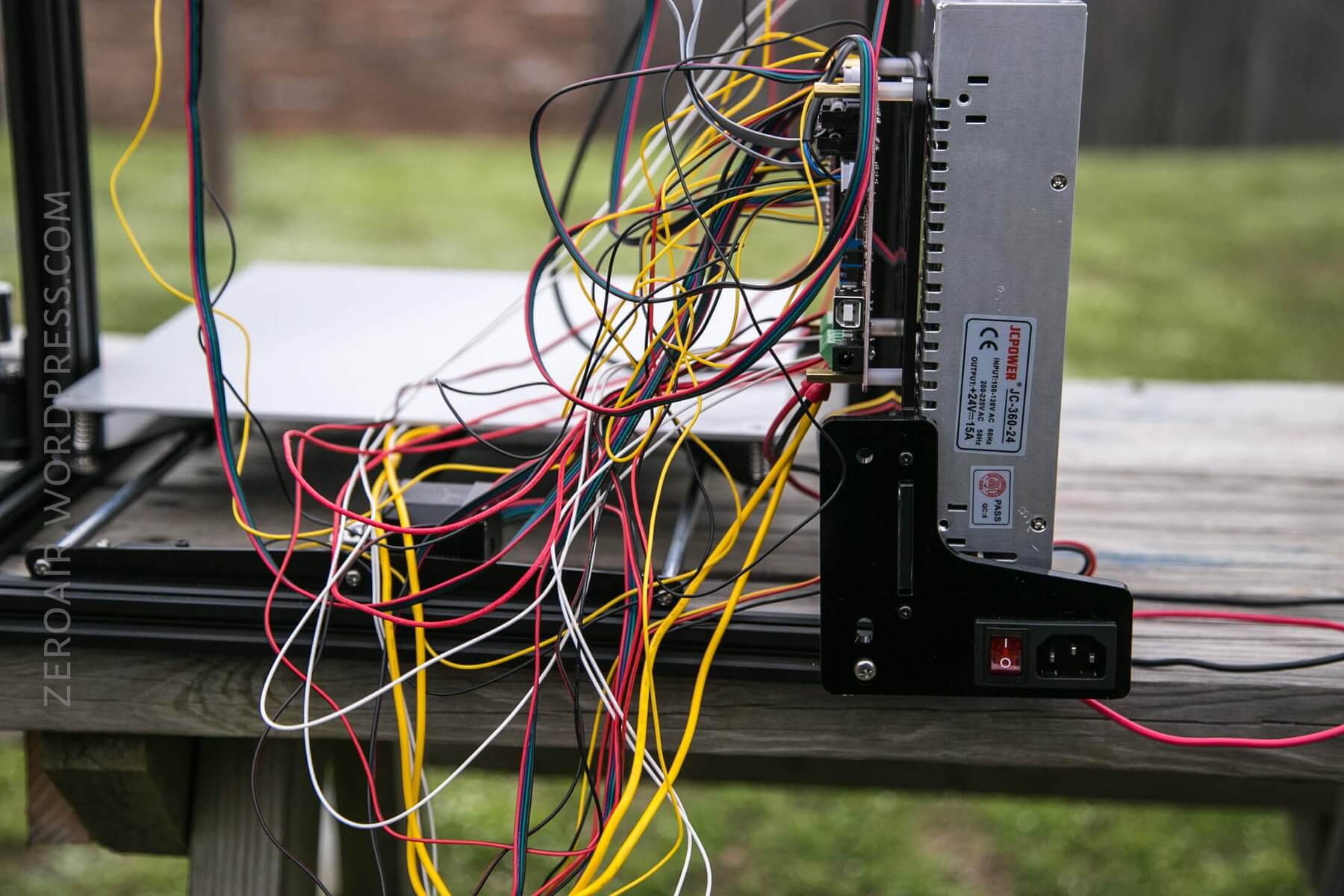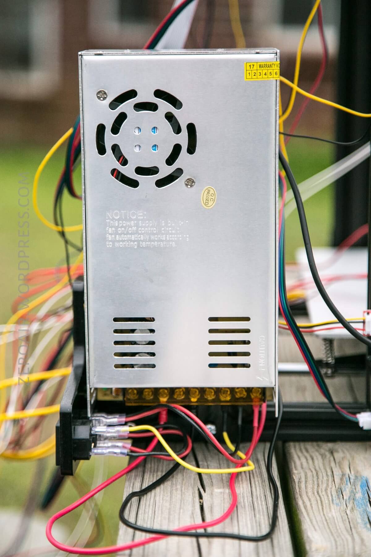 You’ll have to wire all the power from the AC input to the DC supply and then from the DC supply to the brains of the printer. There are documents for doing this, but remember, AC power is no joke, and it’s not a trivial thing to do, even if it is fairly simple.