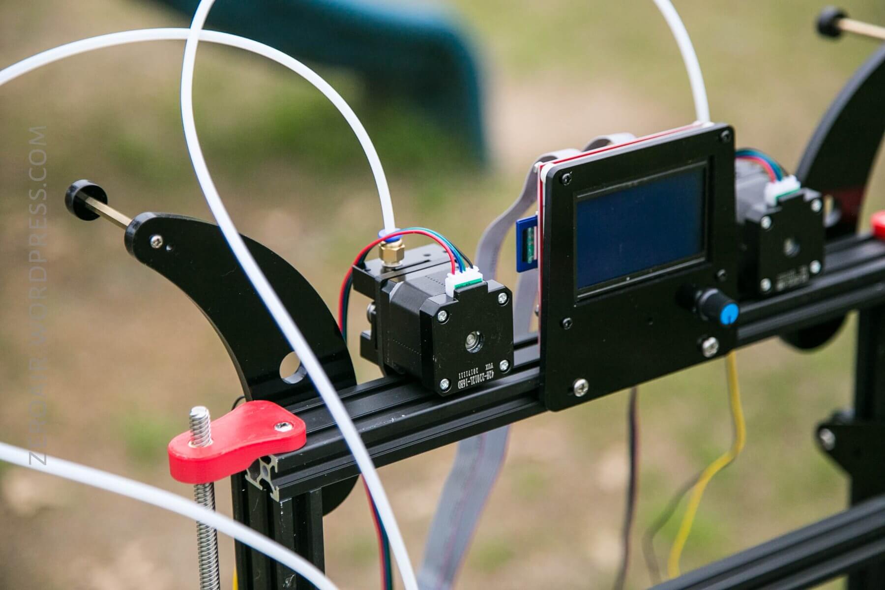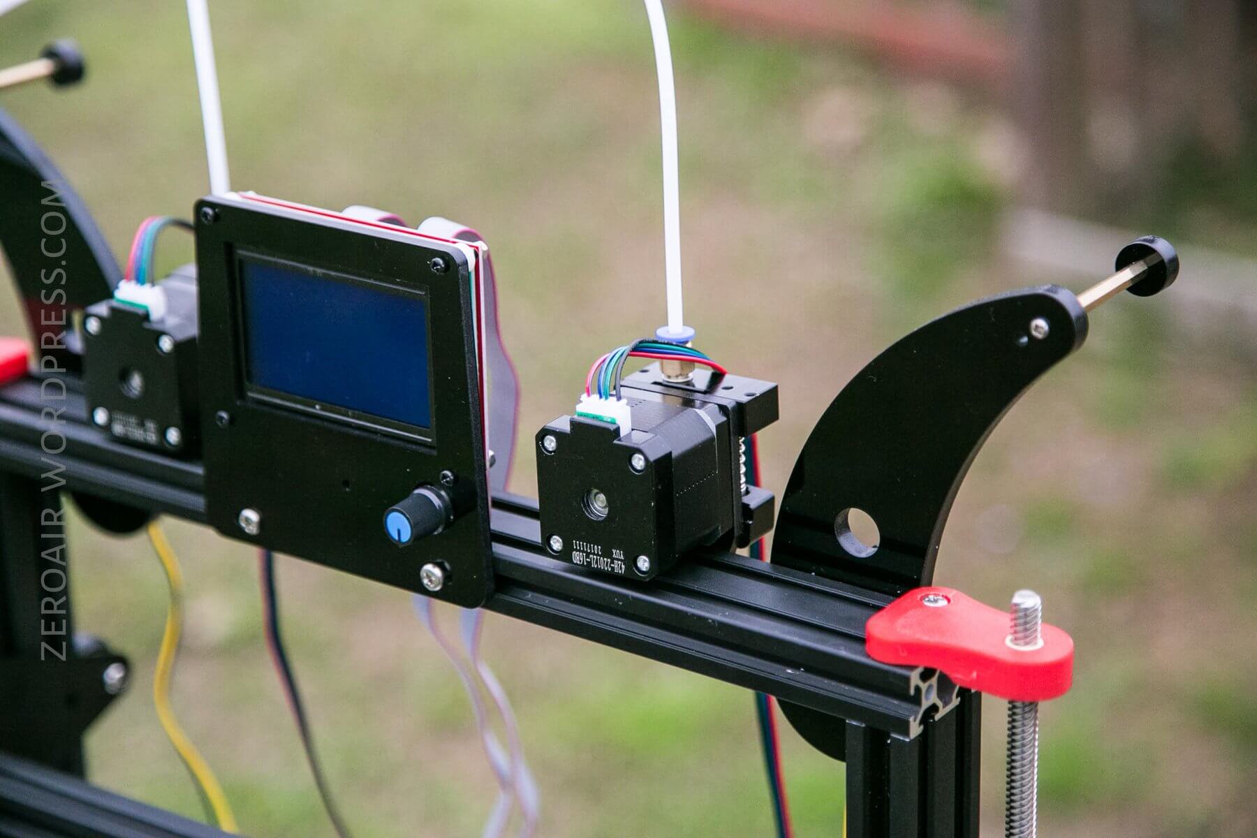 The software for operating the Zonestar printer is included on an SD card. There’s really only one button to interact with. It’s a rotary button – it can rotate and click too. That unit is a pre-built piece and basically just bolts on and is wired up. Fortunately, there’s no soldering or anything required.