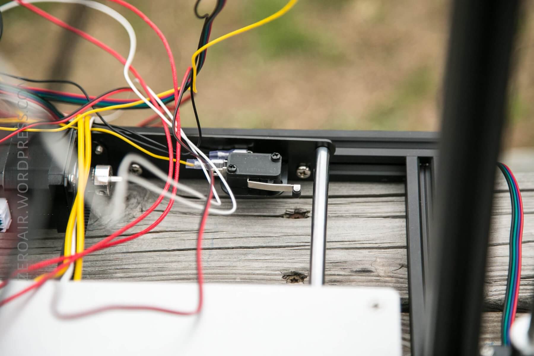 Each of the axes has a switch to prevent any of the stepper motors from going too far. Below, see the little clicky switch.