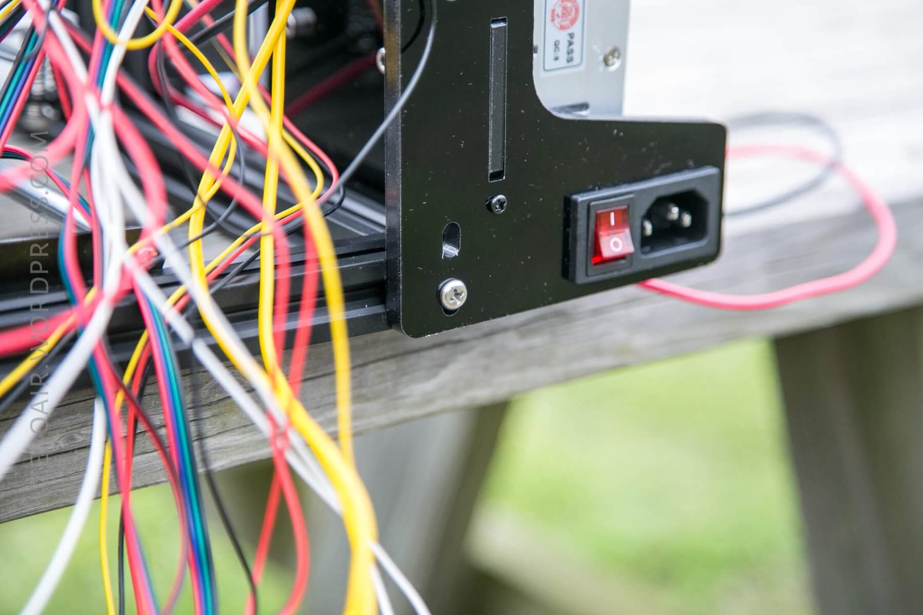 Included in the package are all the parts needed to connect the printer to US wall power. There are some acrylic parts that are connected to the metal frame. Into one of those is placed a power switch and a plug. A power cable is included (but you probably have 50 of these – the same one as is used to connect a computer to power.