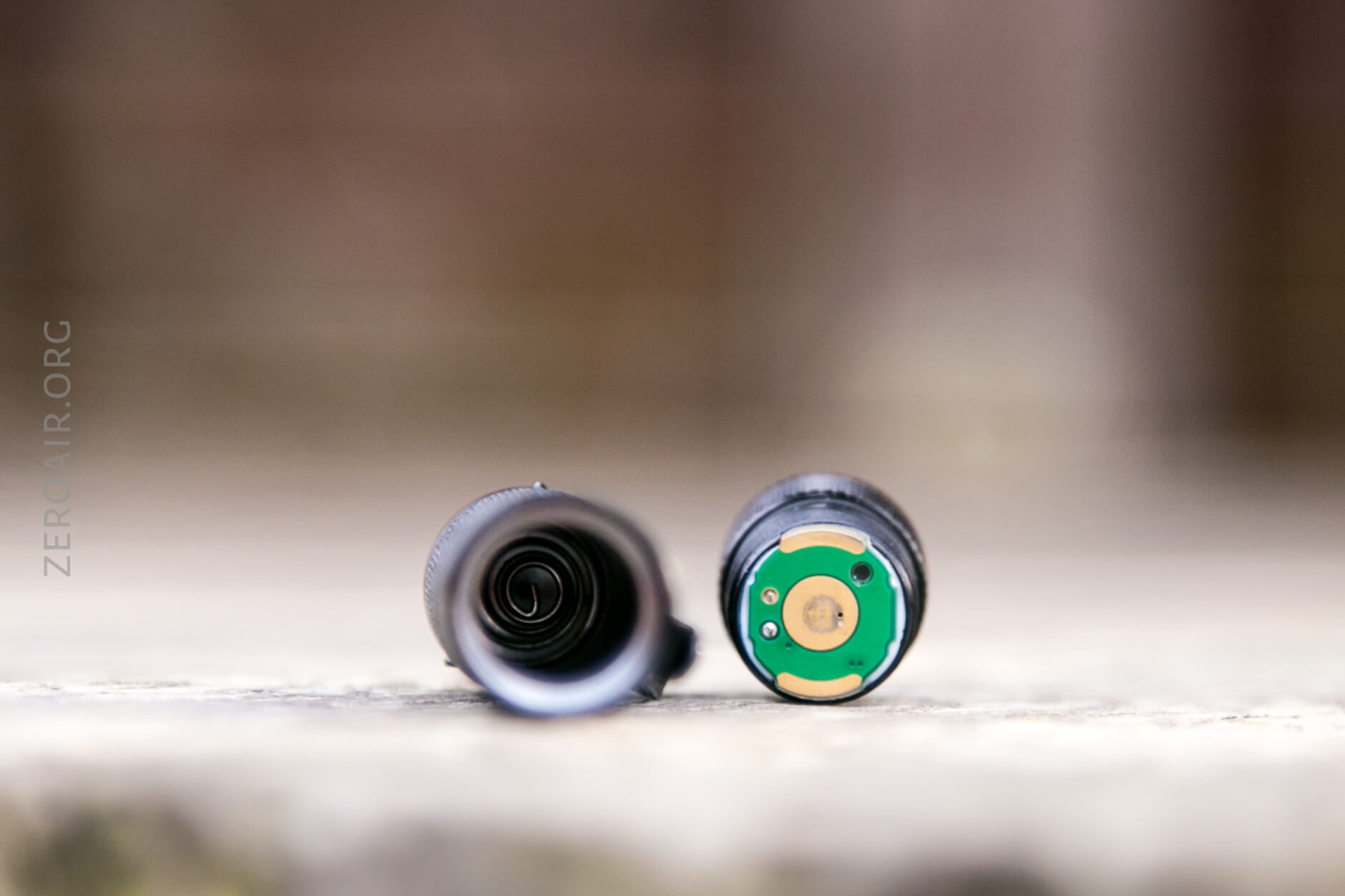 The tail end has a spring. The head doesn’t have a spring or even an actual button – it’s just a little brass pad on the MCPCB.