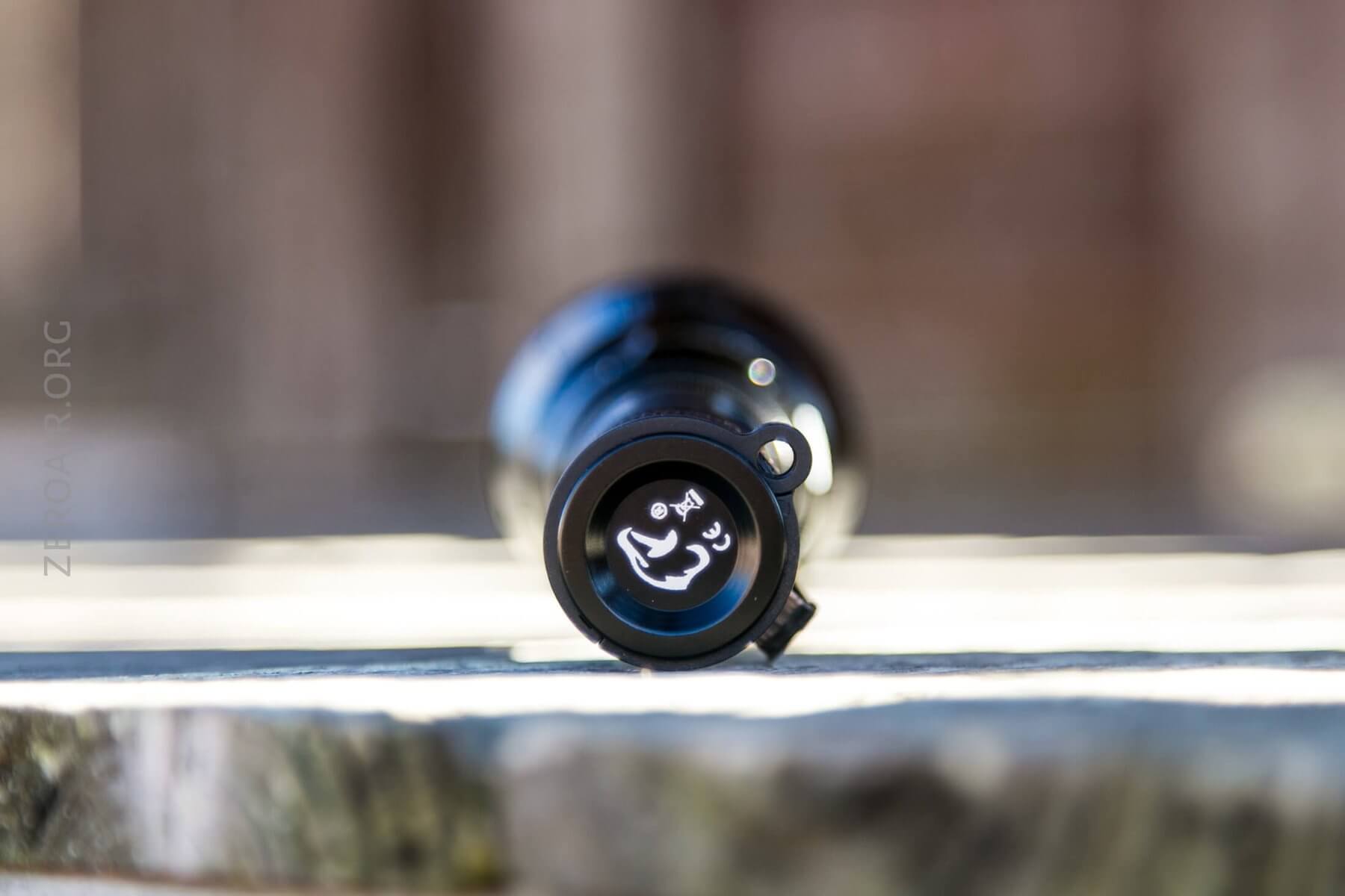 The tailcap, seen below, has some very useful knurling. As I said above, the little lanyard connection is useful – it spins freely. What I’ve found myself doing is gripping that and squeezing down on the knurling to twist. Then keep the grip on the ring, but loosen the grip on the knurling. It’s a very smooth action.