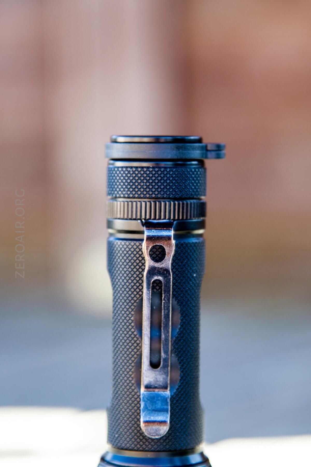 The reason I trust the pocket clip for lanyard attachment is that there’s a ring that screws down over the pocket clip, preventing it from sliding off. That’s a very clever solution to clip management, while still allowing for the clip to be removed. To remove the clip, take off the tailcap. Removing the o-ring is not necessary, but it will help. Then unscrew the tiny clip-retention ring (the reeded part – that looks like the side of a quarter coin). This might not remove all the way, but it’ll unscrew enough to allow the friction clip to be removed. Then screw it back down, screw the tailcap on, and you have a clipless SX30C2. (Also note that this means it removes seamlessly!)