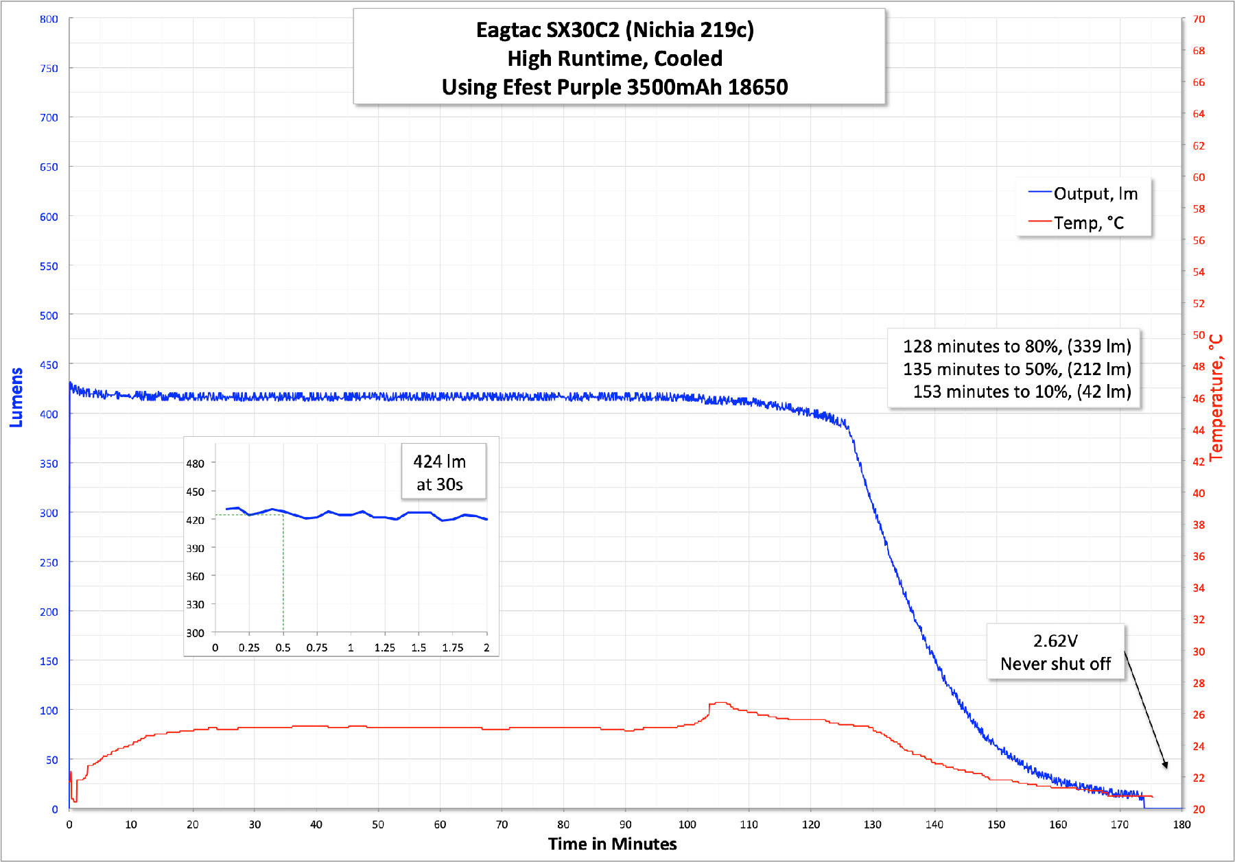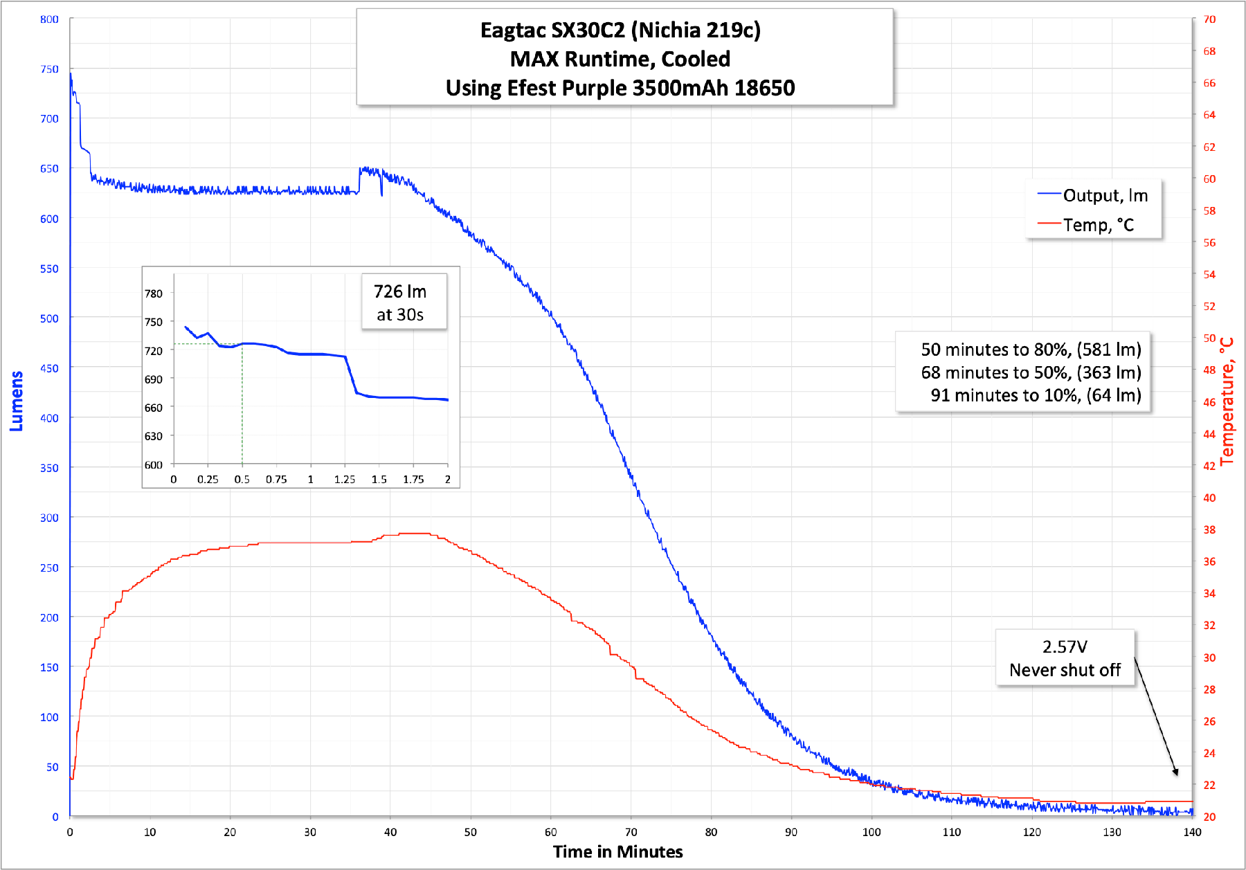 During a runtime, I might say “this light has no LVP,” but in reality, at any point during use, the light could be shut off and turned back on to see what the approximate cell voltage is. Also, the output would be a very good indicator.