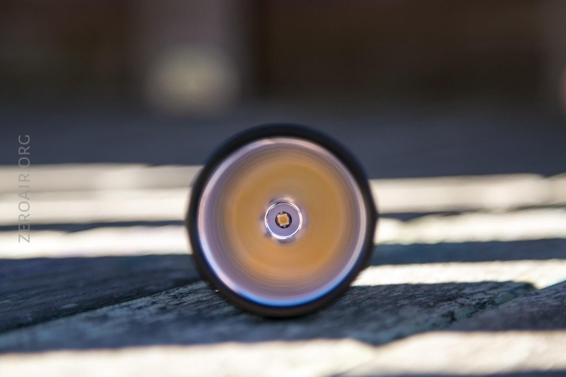 Here’s another special thing about this light! It’s available in a stock configuration with a Nichia emitter. This is a High CRI 219c model. That’s not unheard of in production lights, but it’s a little unusual in this type (thrower). And that’s a good thing – warmer lights make great thowers!