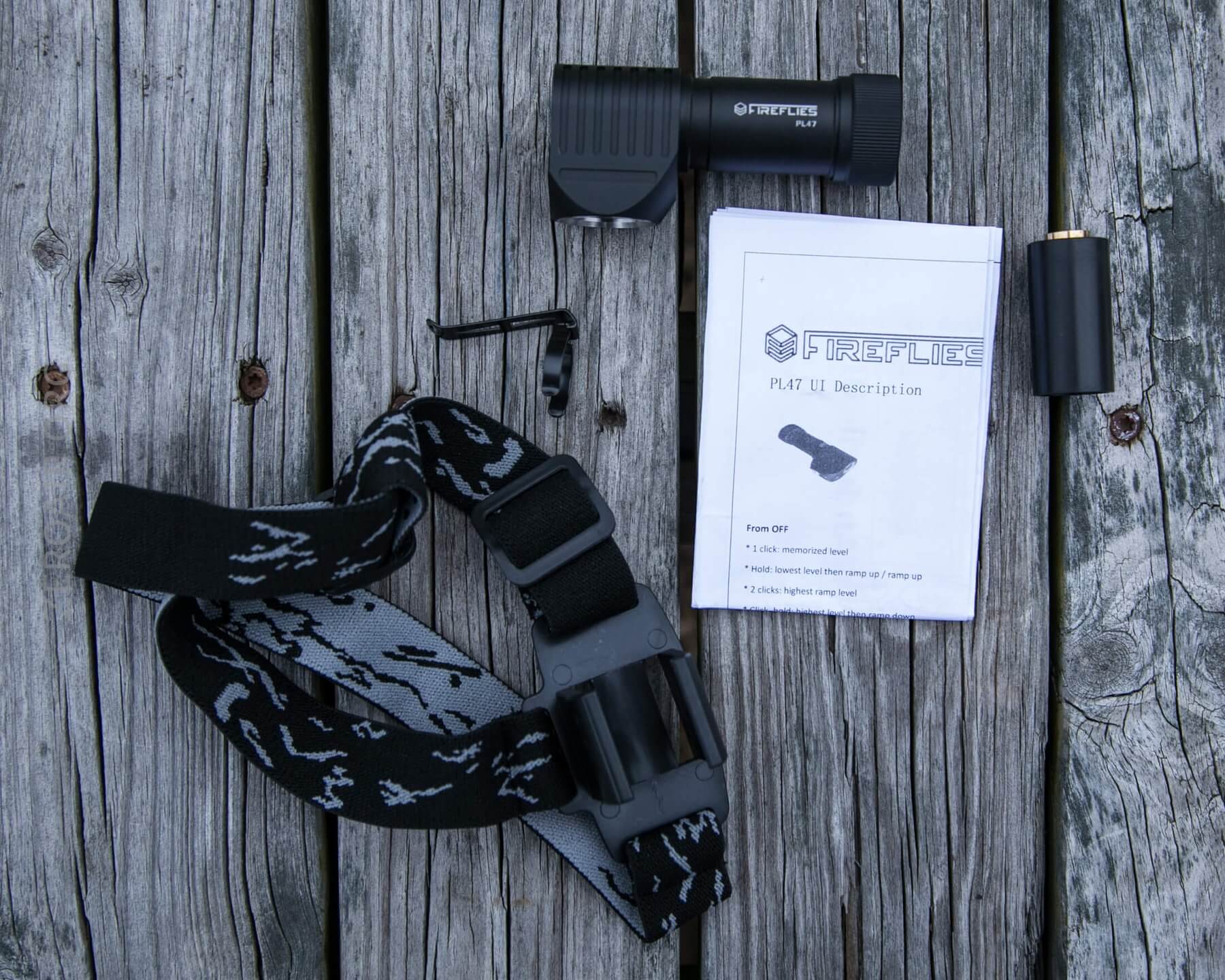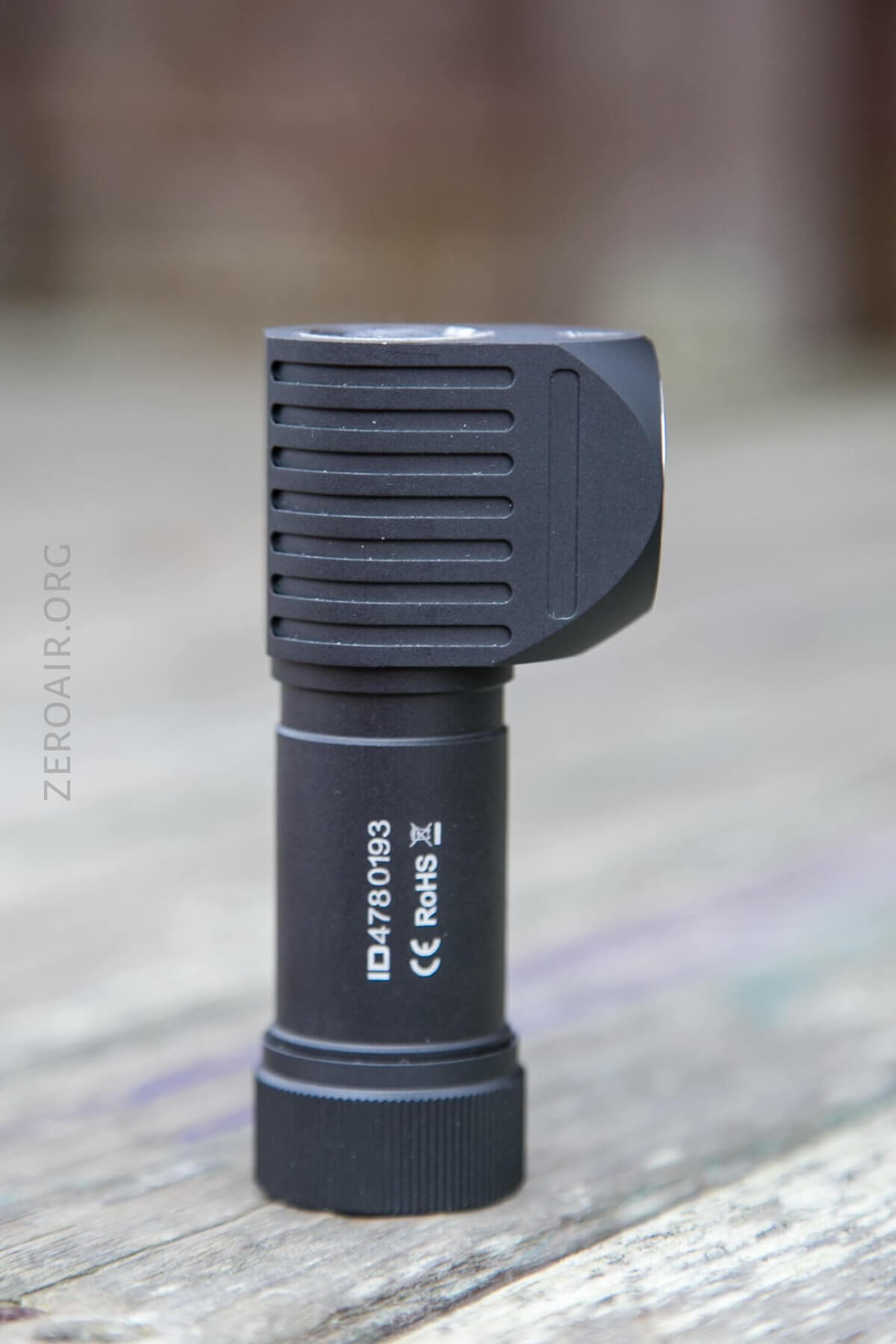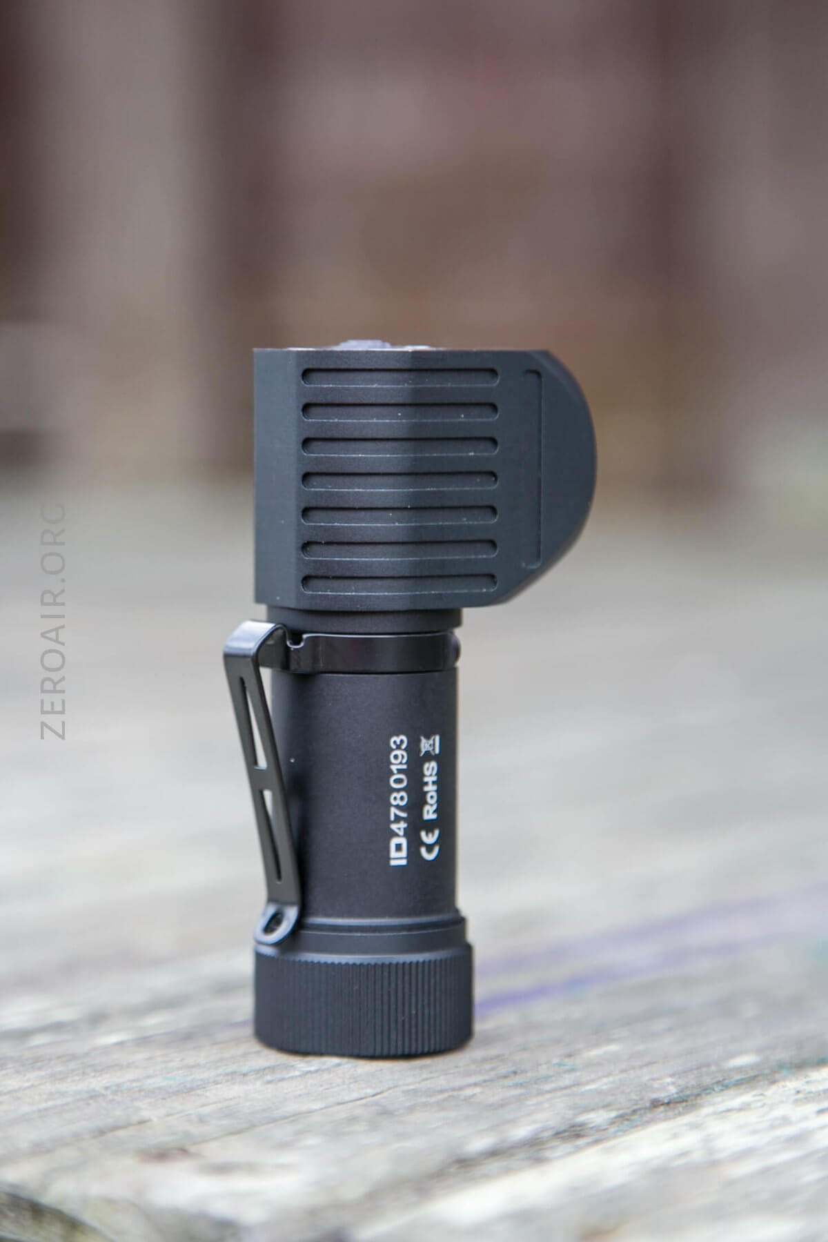 The Fireflies PL47 flashlight is a headlamp, or at least a “right-angle” flashlight. It runs on a single 21700 and has a triple Cree XP-L HI setup.