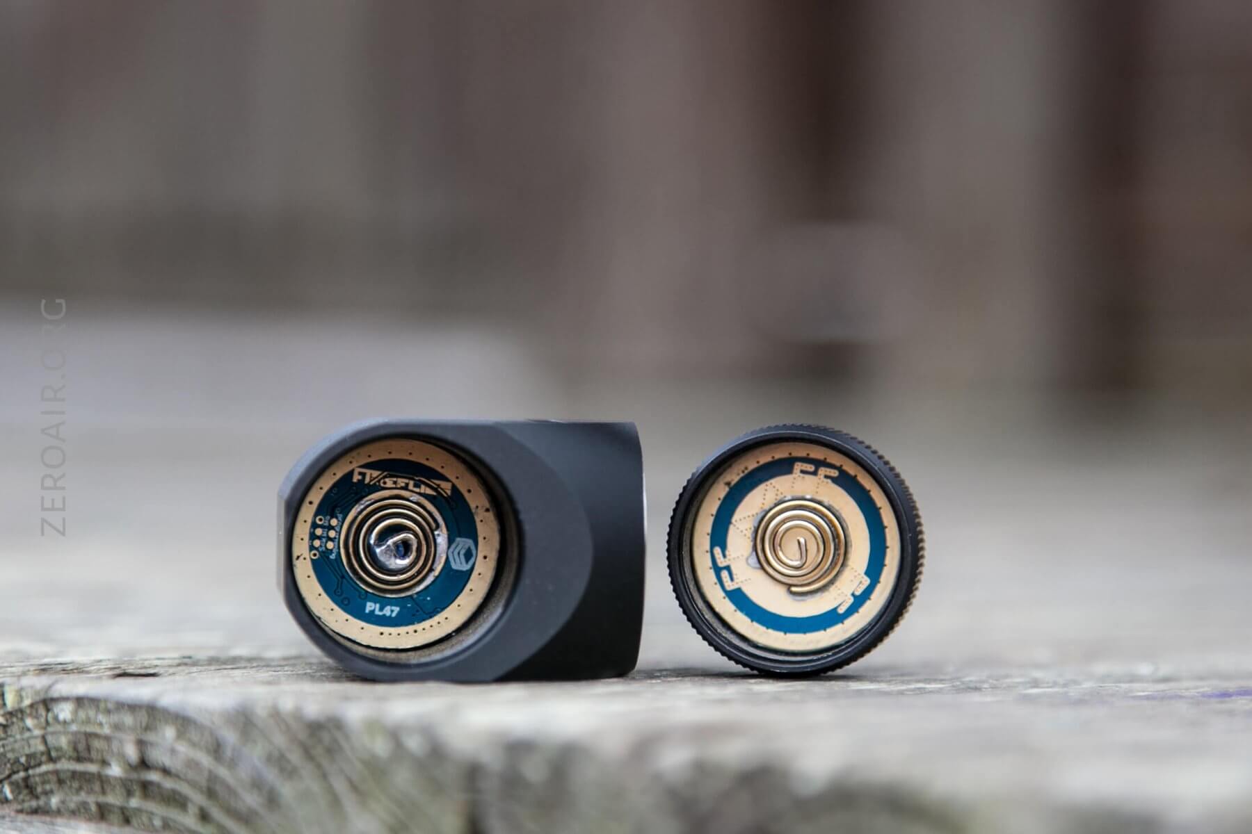 The PL47 is powered by a single 21700 cell. I’ve tested it only with a Samsung 50E, but since the light has springs on both ends, other types of 21700 should work, provided they aren’t too long.