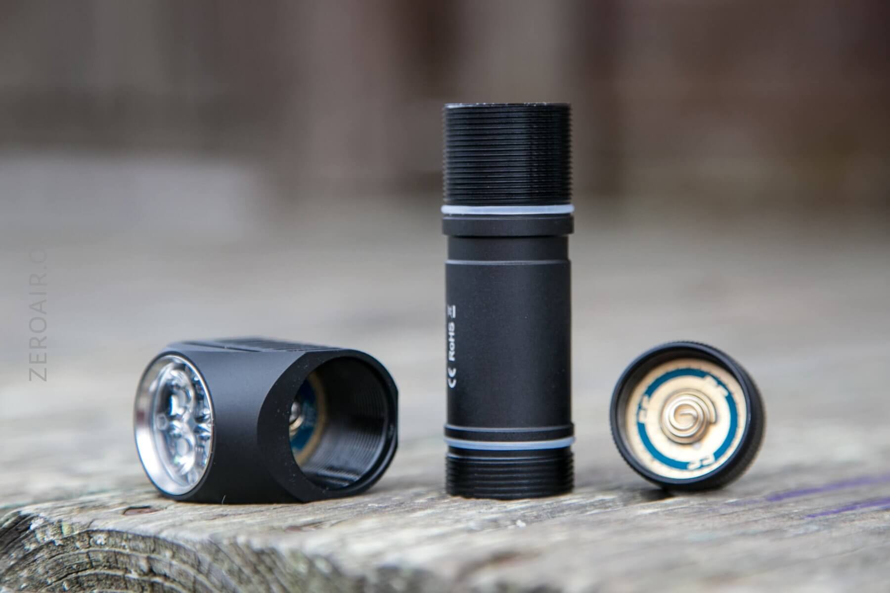 This light is overall just an unusual build. Not quite in the headlamp category, except that it includes a headband that allows headlamp use. It’s more of a right-angle light for handheld use. The overall build quality is good but unusual.