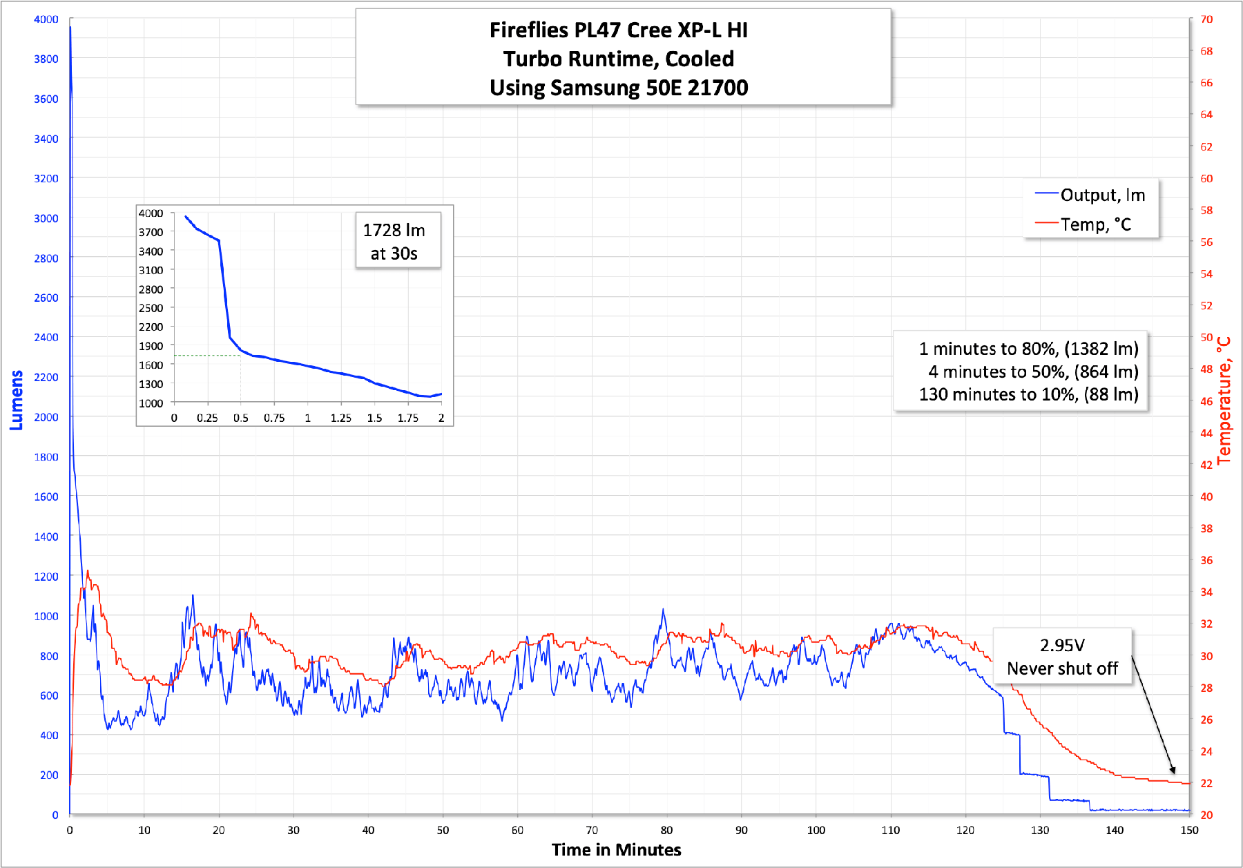 Below is the runtime on Turbo. “Turbo” is accessed by turning the light on to any mode, then double-clicking (not double-clicking from off).