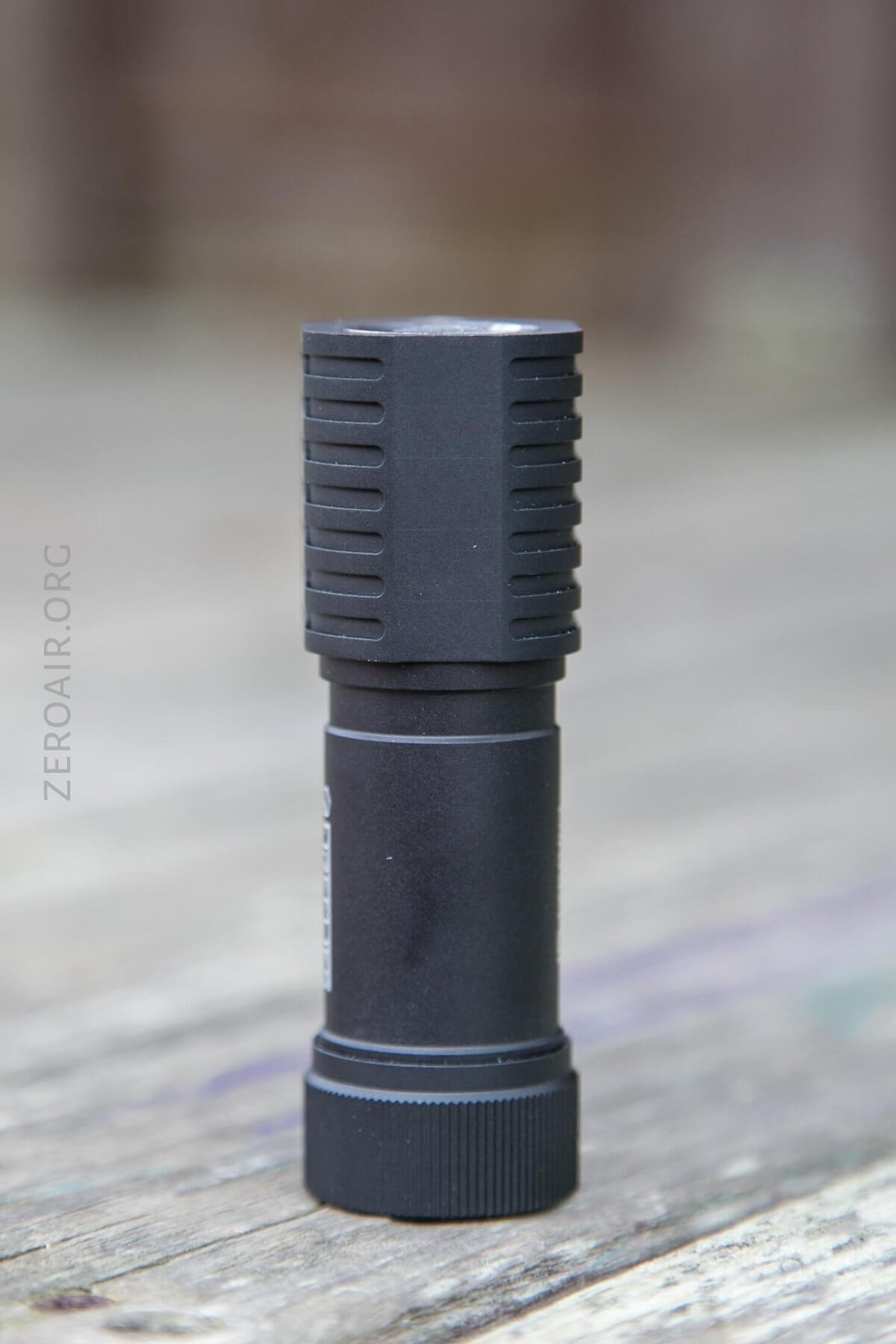 There’s a single e-switch. It’s on the head and has an indicator function – more of a locator beacon function than anything else. The light runs on Andúril, made by ToyKeeper. The user interface is the same as that of the Fireflies E07.