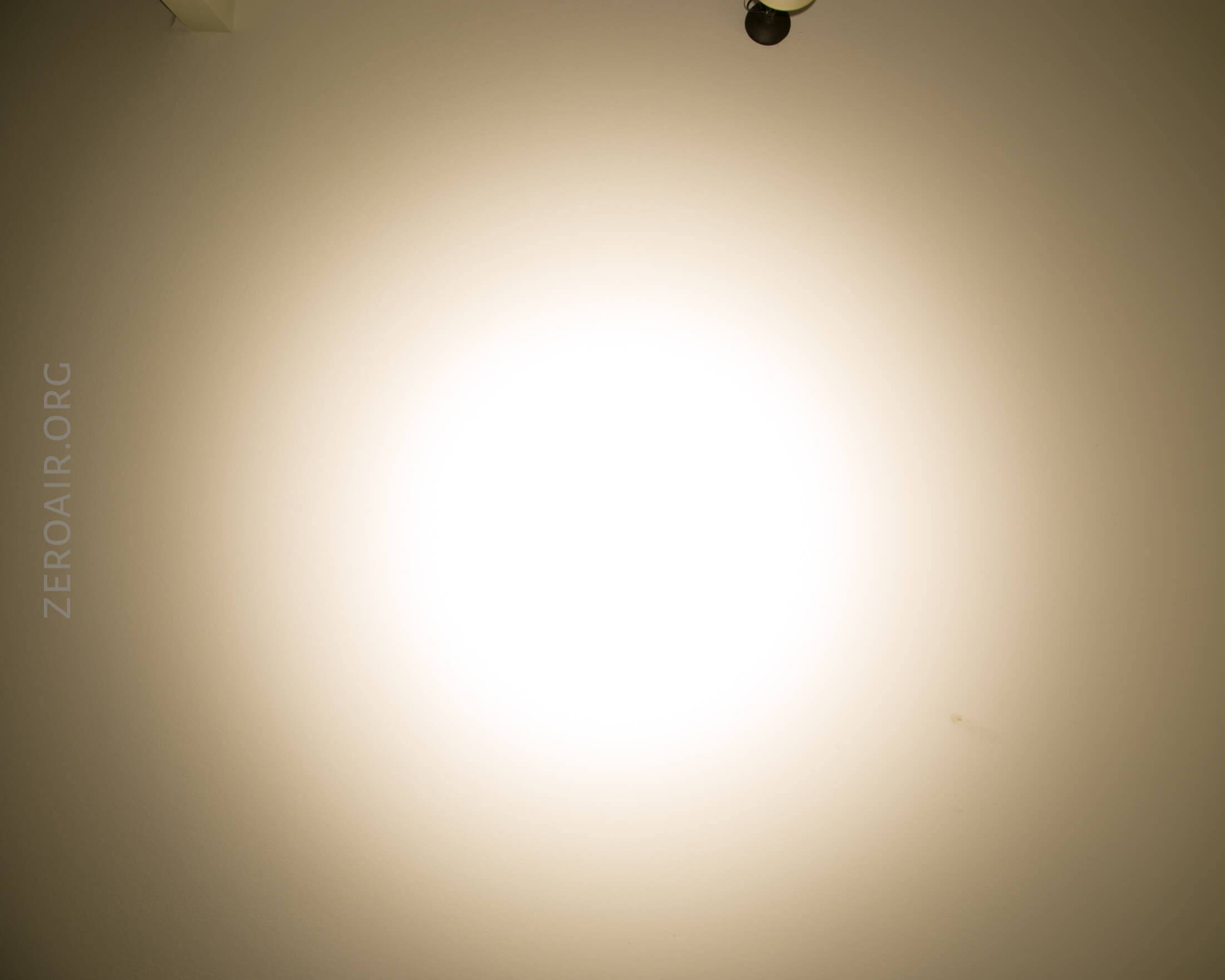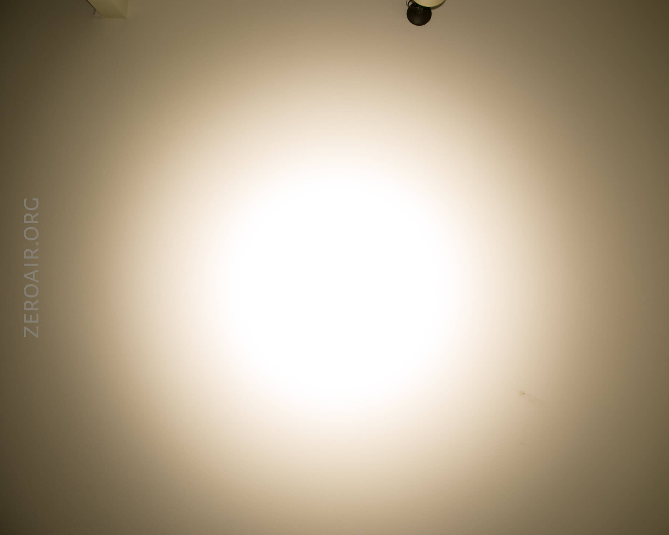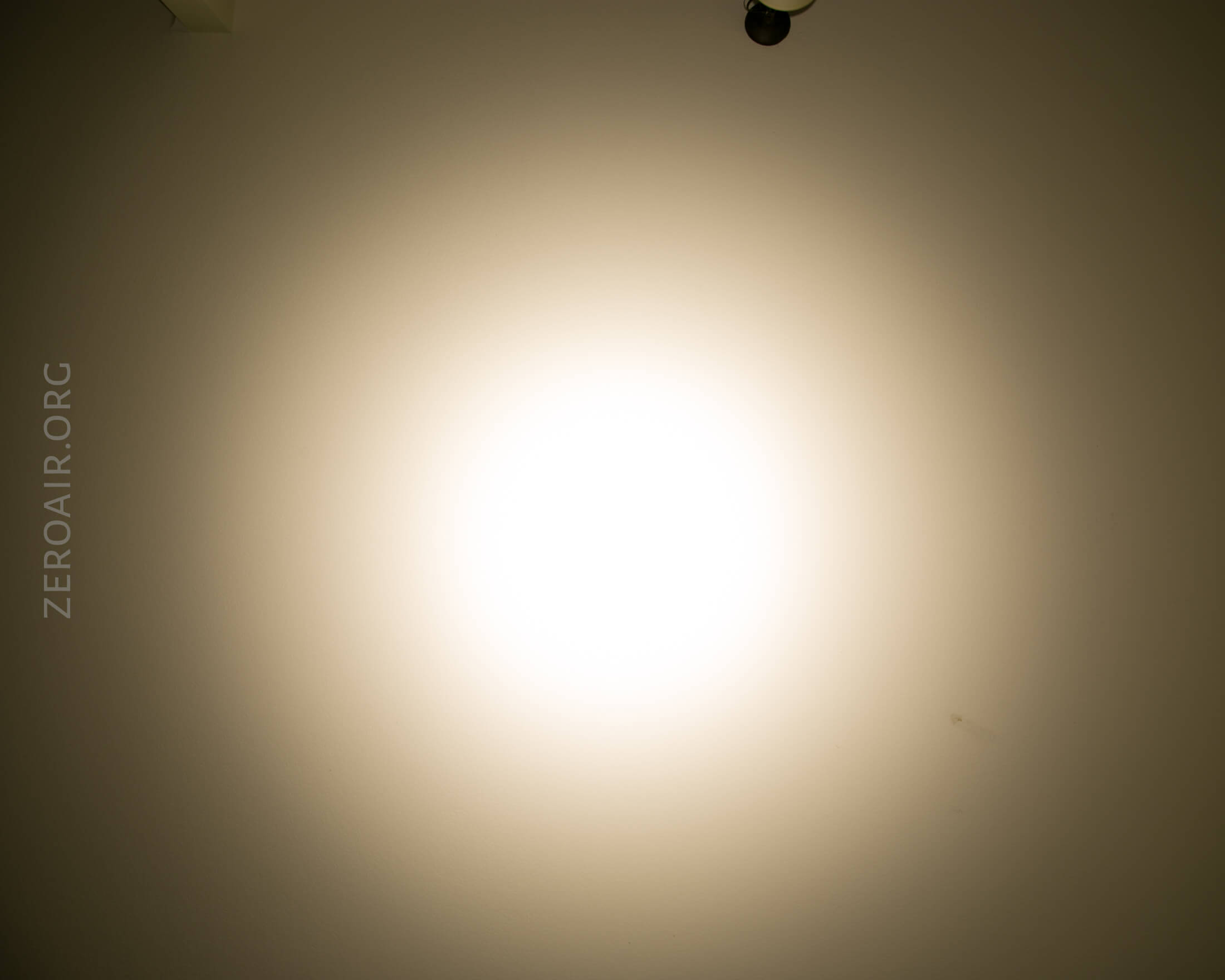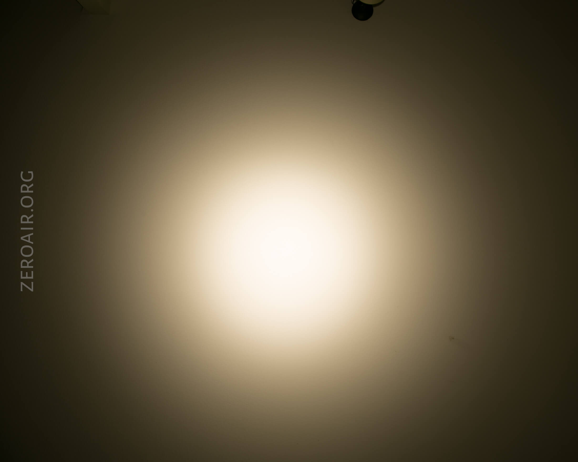 Though there are many choices, my sample has XP-L HI, in 4000K temperature.  Cree XP-L HI 4000K is practically my favorite emitter (aside from a select few Nichia 219b).  These emitters are behind a clear optic, and provide a beam with a fairly tight hotspot, fading into a bit of spill.