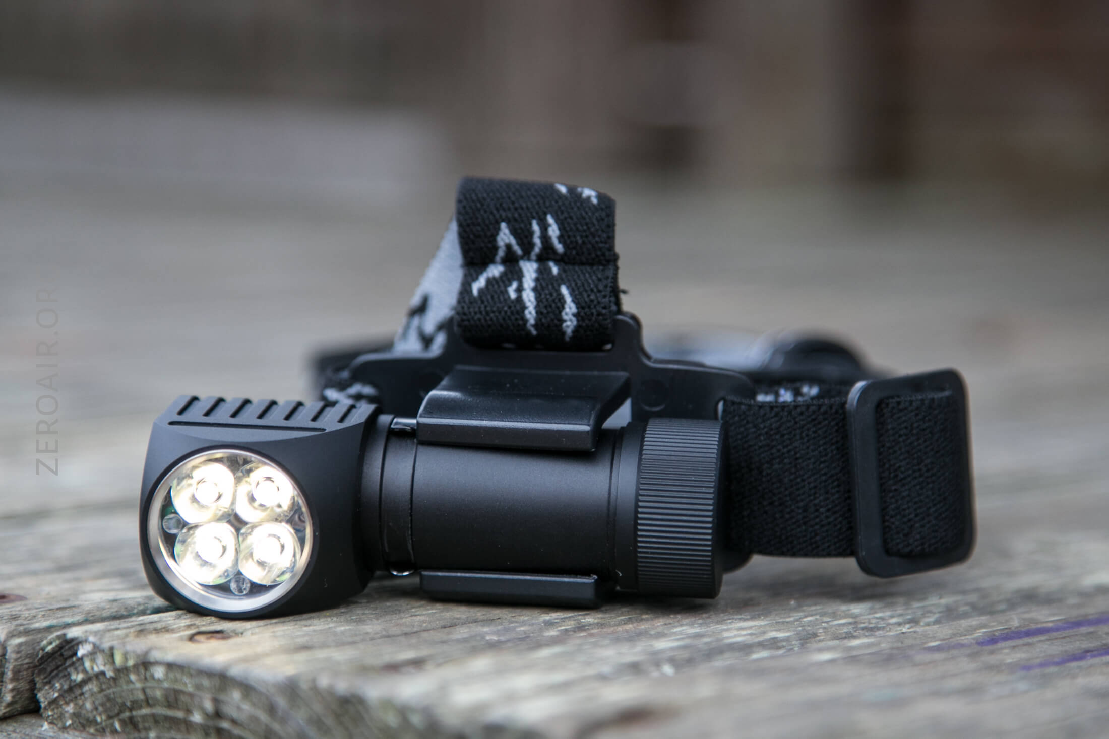 The Fireflies PL47 is a headlamp, or at least a “right angle” flashlight. It runs on a single 21700 and has a triple Cree XP-L HI setup.