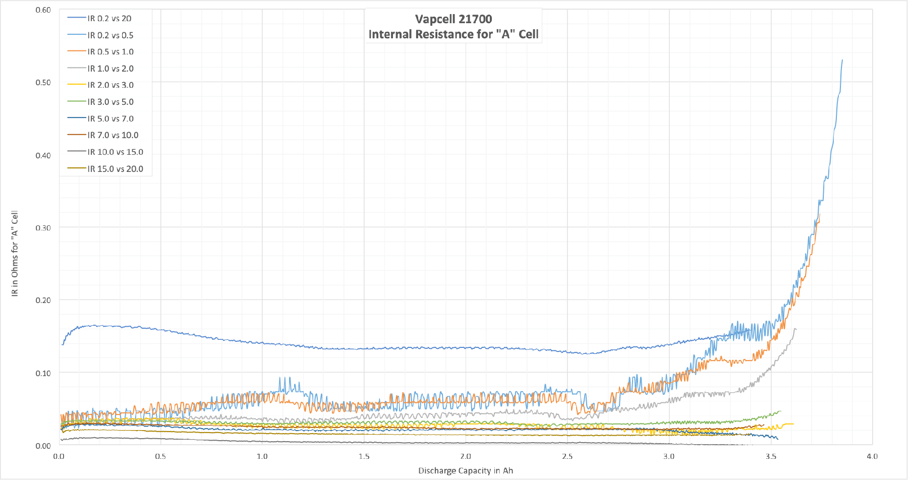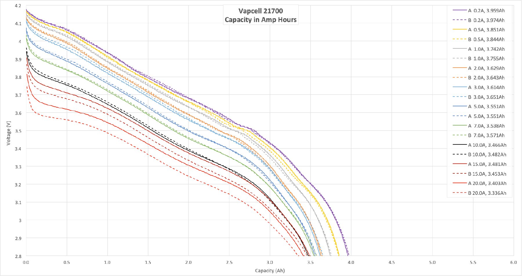 A very good cell. These seem to be a great performer at higher currents, and certainly to the place I tested them, at 20A. Data would indicate they’re capable at currents higher than 20A.