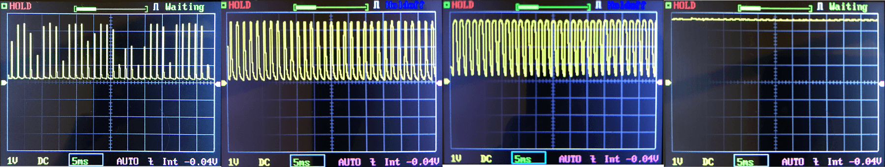 A new section! I am new to measuring PWM, and my setup is very rudimentary (which can be said about almost all of my setups? eek). But this is something I’ve wanted to add for ages – I’m very PWM sensitive, and knowing whether a light has visible PWM is very useful to me. While there does appear to be some PWM on the lower modes (of the stepped setup), I don’t find this to be visible. And if I don’t, I expect you will not either. By the fourth step (below), the light does not display any PWM at all.