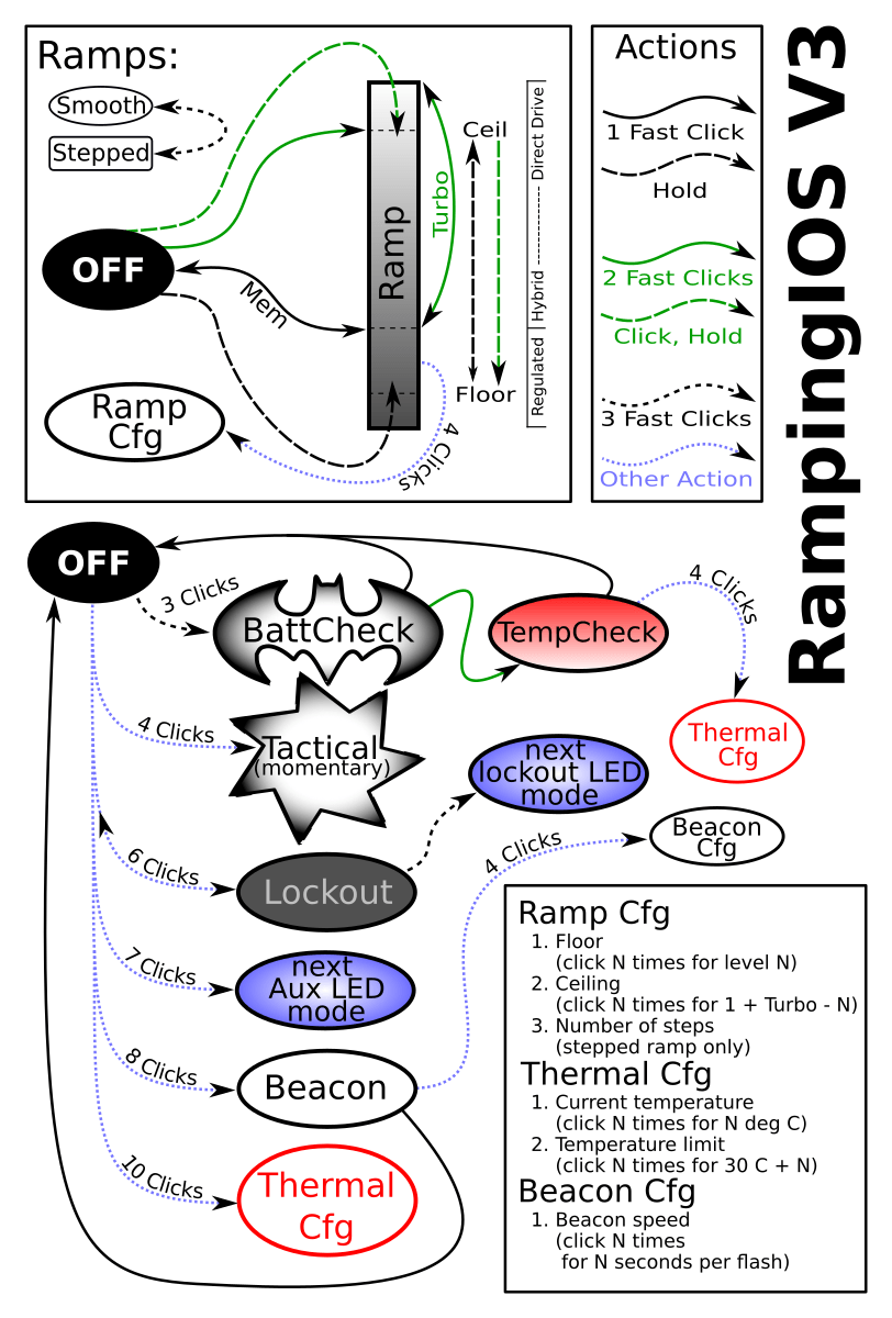 | Ramp Configuration | [Wait for Single flash] Click N time for level N. | Selection of the “Low” you like best by clicking 1, 2, 3, etc. where 1, 2, 3, etc are different levels of low. |