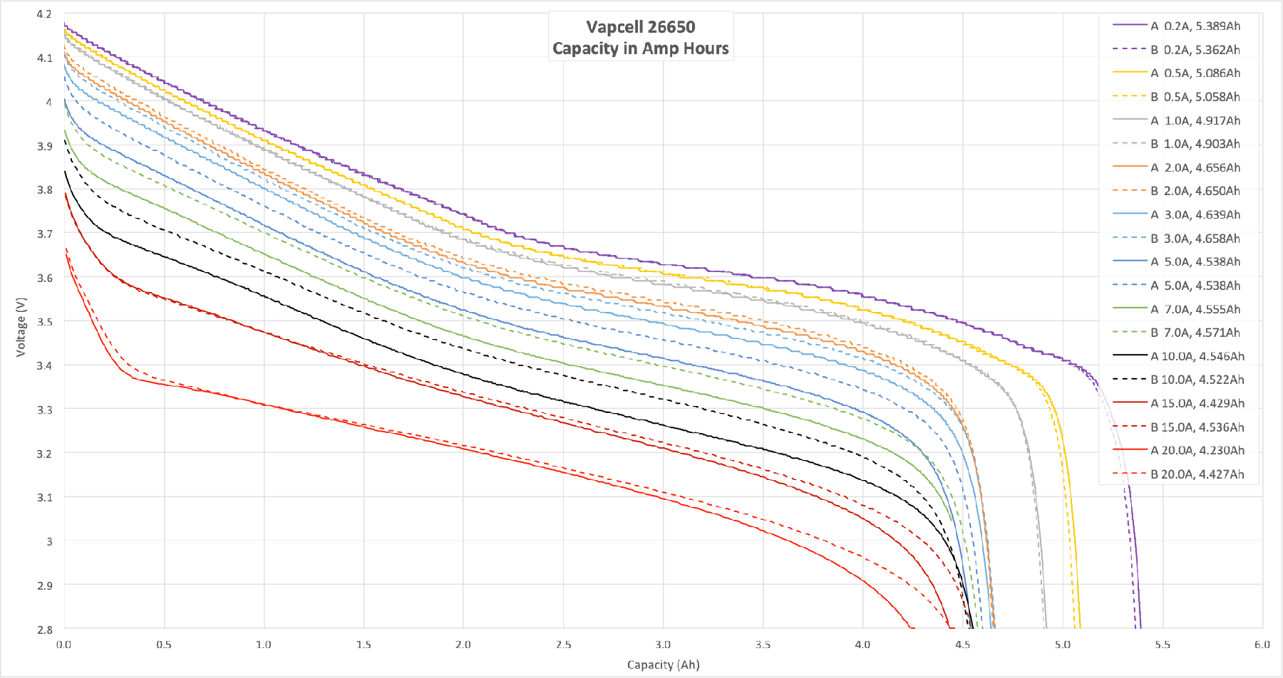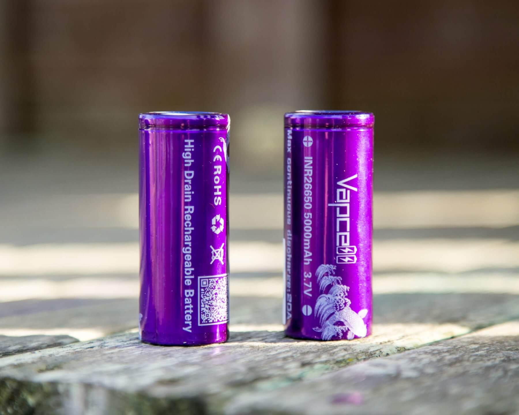 The Vapcell 26650 Lithium-Ion Cell has a flat top and good capacity. The 5000mAh capacity still allows a higher discharge current too!