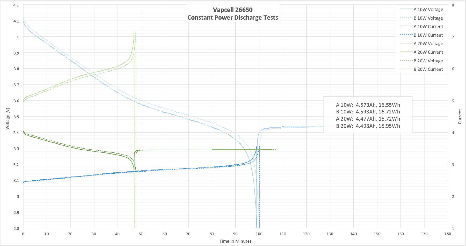 Regarding the dropoff at 3.4V – note that the cell is still hitting its rated capacity, even if you shut the test off or use off at 3.4V.