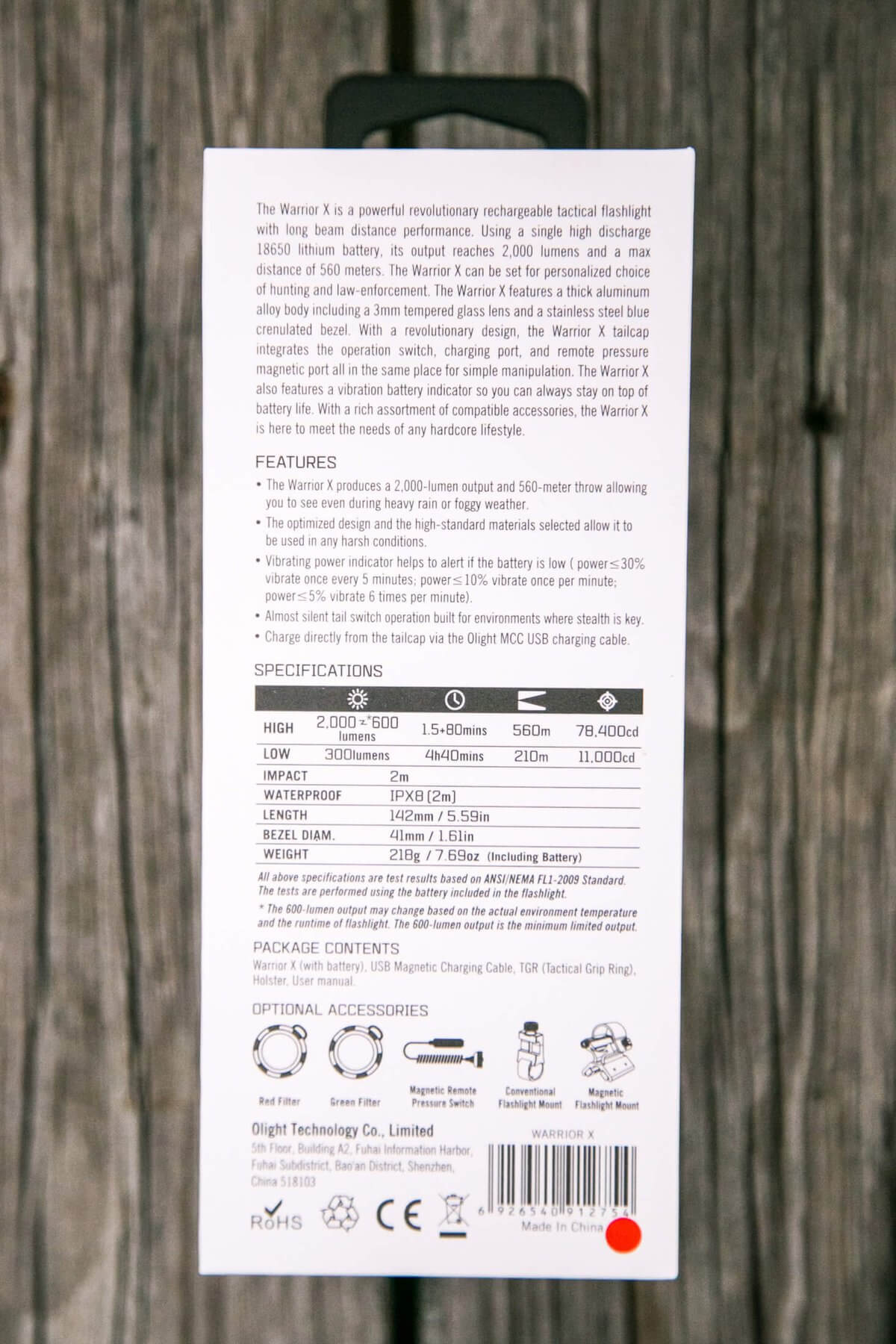 The package is exactly what you should expect from Olight by now. A nice white box, a big product photo, and specs on the back.