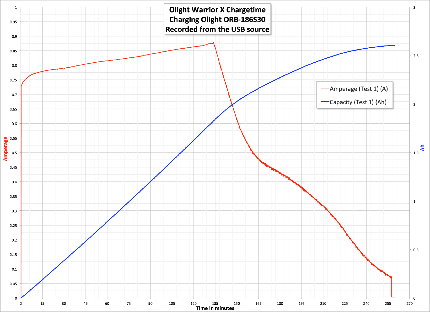 Charging proceeds at >0.75A for the duration of the CC phase, increasing along the way. Total charge time is around 4 hours.