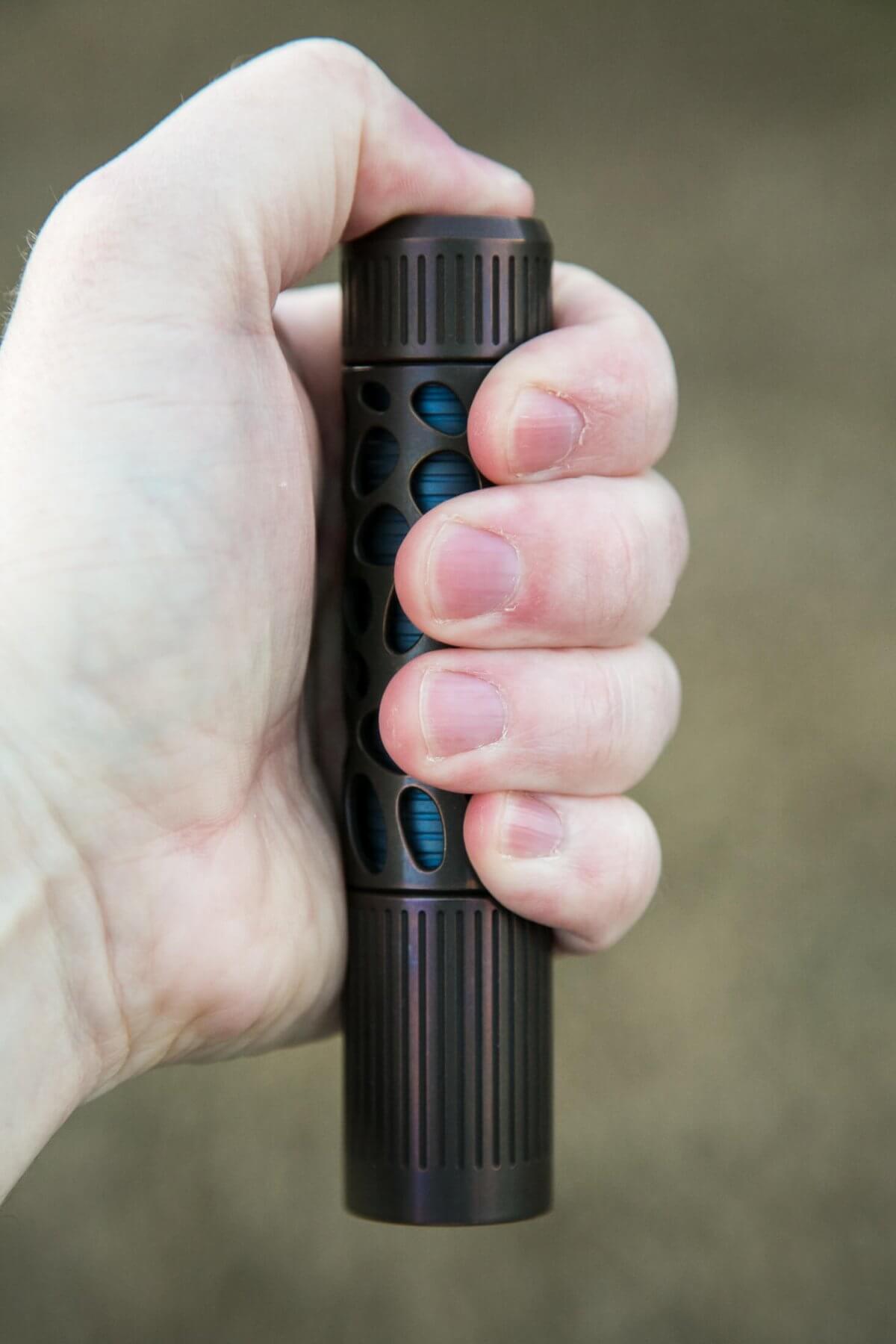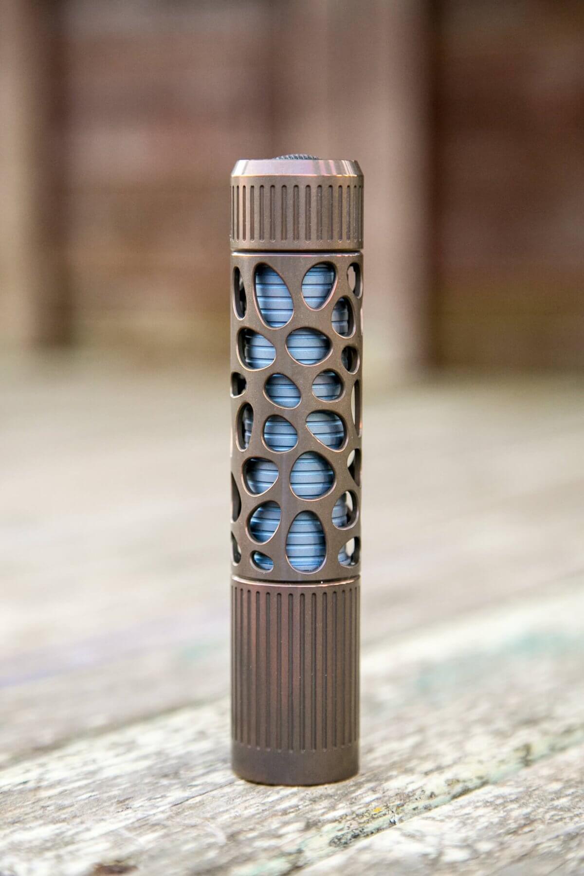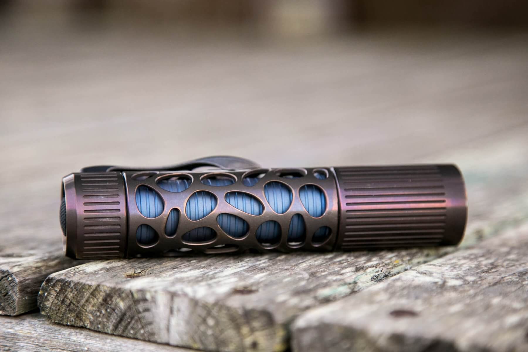 I absolutely love the body features of the Rama. The holes in the body sleeve are neat, interesting, and a nice change from the usual flashlight. I also really love the anodizing on the titanium. As best I can recall, I haven’t handled titanium anodized like this before, and it has an incredible texture. Aside from the texture, I like the colors, too! On the flip side, I don’t like the driver at all. It uses PWM, has two in-line strobe modes, and the overall output is a little low. And the light is overall too large, both in diameter and length.