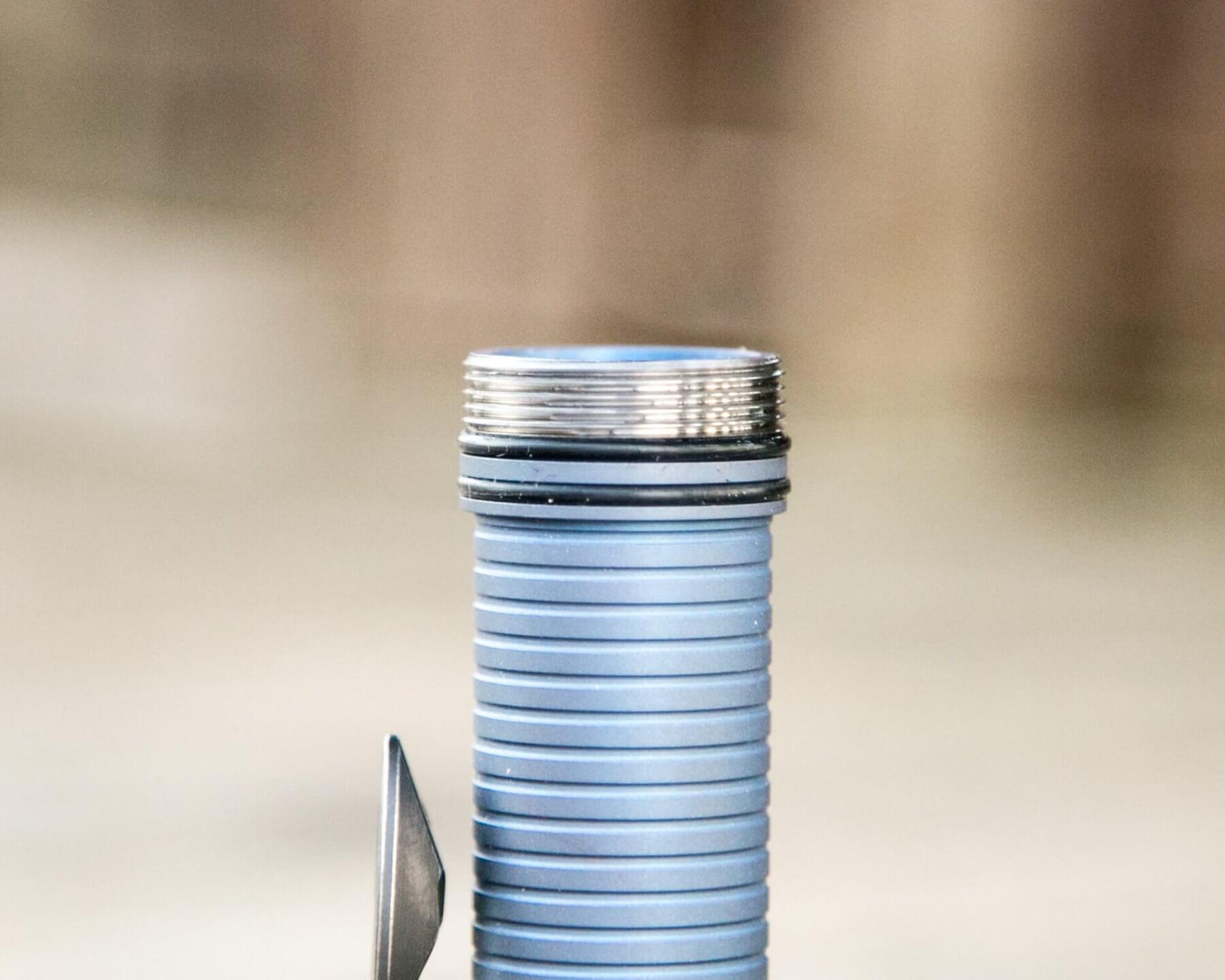 The blue body tube behind the holes is a completely separate piece. The whole tube is held securely by the head and tail and kept isolated with o-rings, but the light is waterproof with or without it.