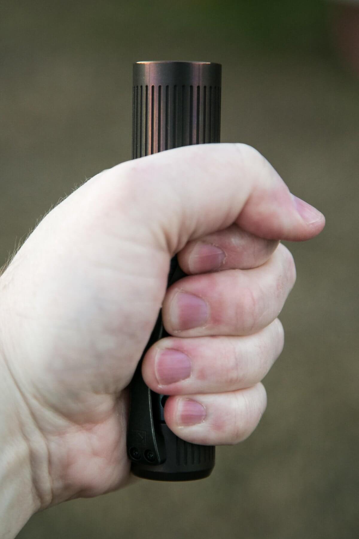 It’s not a springy clip like you might know from a light like the TorchLAB BOSS. It’s much more of a fixed clip like the one on the MechForce MechTorch. That said, the very thin waist in the center of the clip offers quite a bit of flex, so in the end it’s approximately between those two types of clip for springiness.