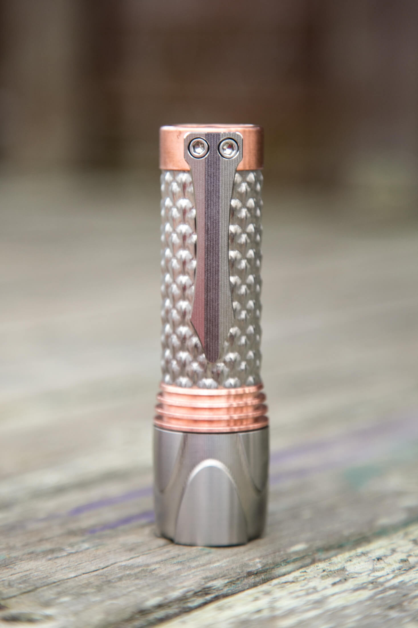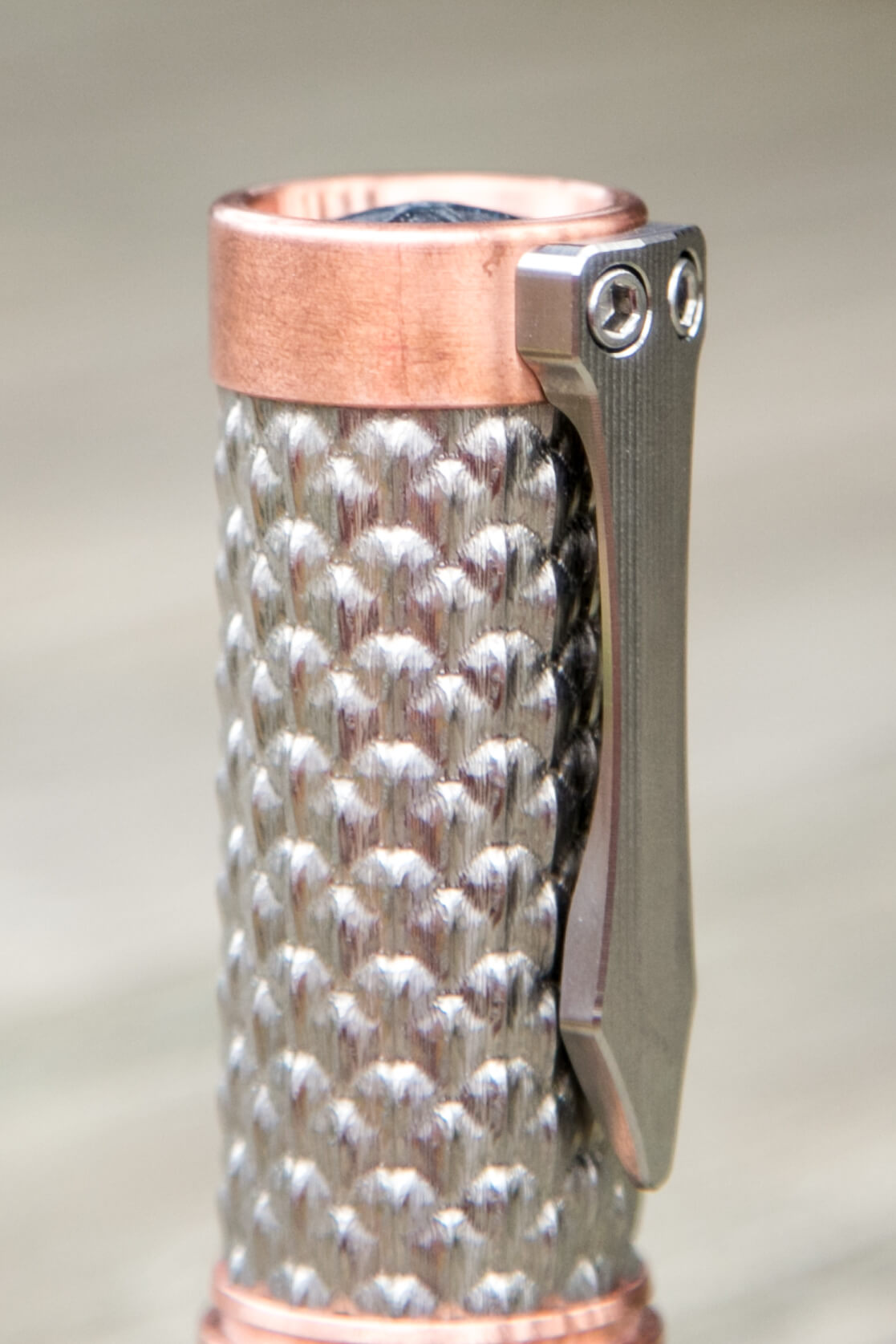 This is such an interesting light. There’s a ton of copper, and with the H17fx, that’s a good choice. The titanium is like nothing I’ve ever seen in a light before – the milling is quite unusual. I like the light. I’m not sure how much I’ll carry the light, but it really is exquisite.