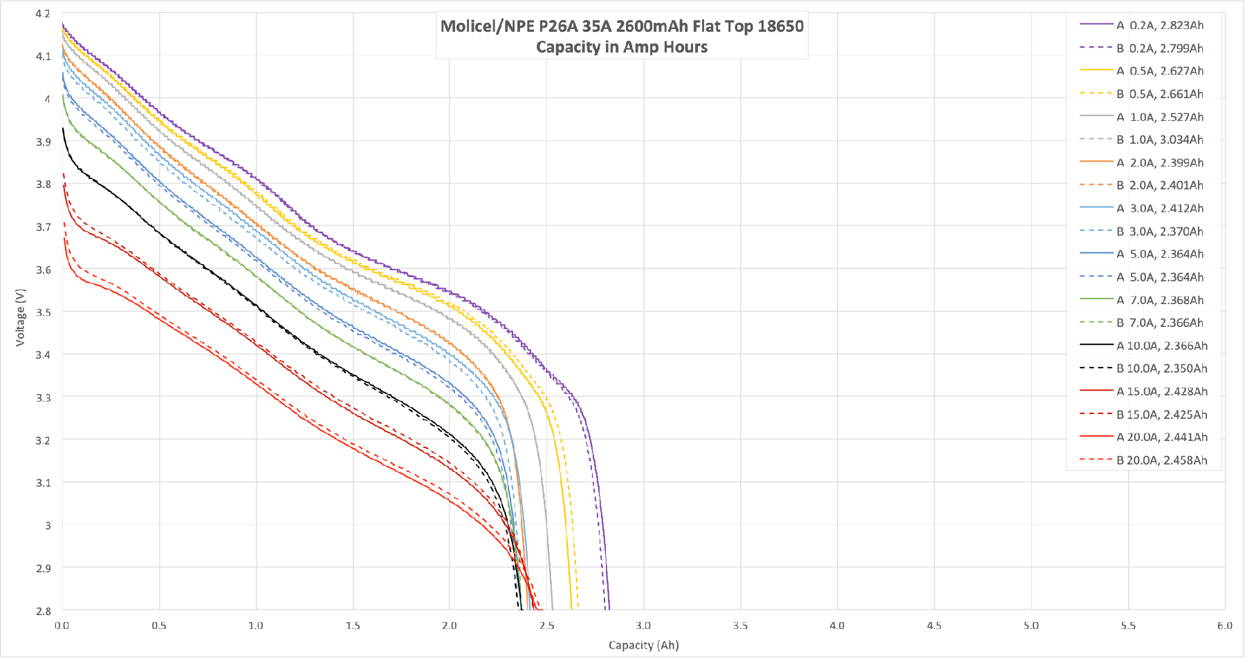 Many of the tests are over 2500mAh, and the cells certainly hit the rated 2600mAh.