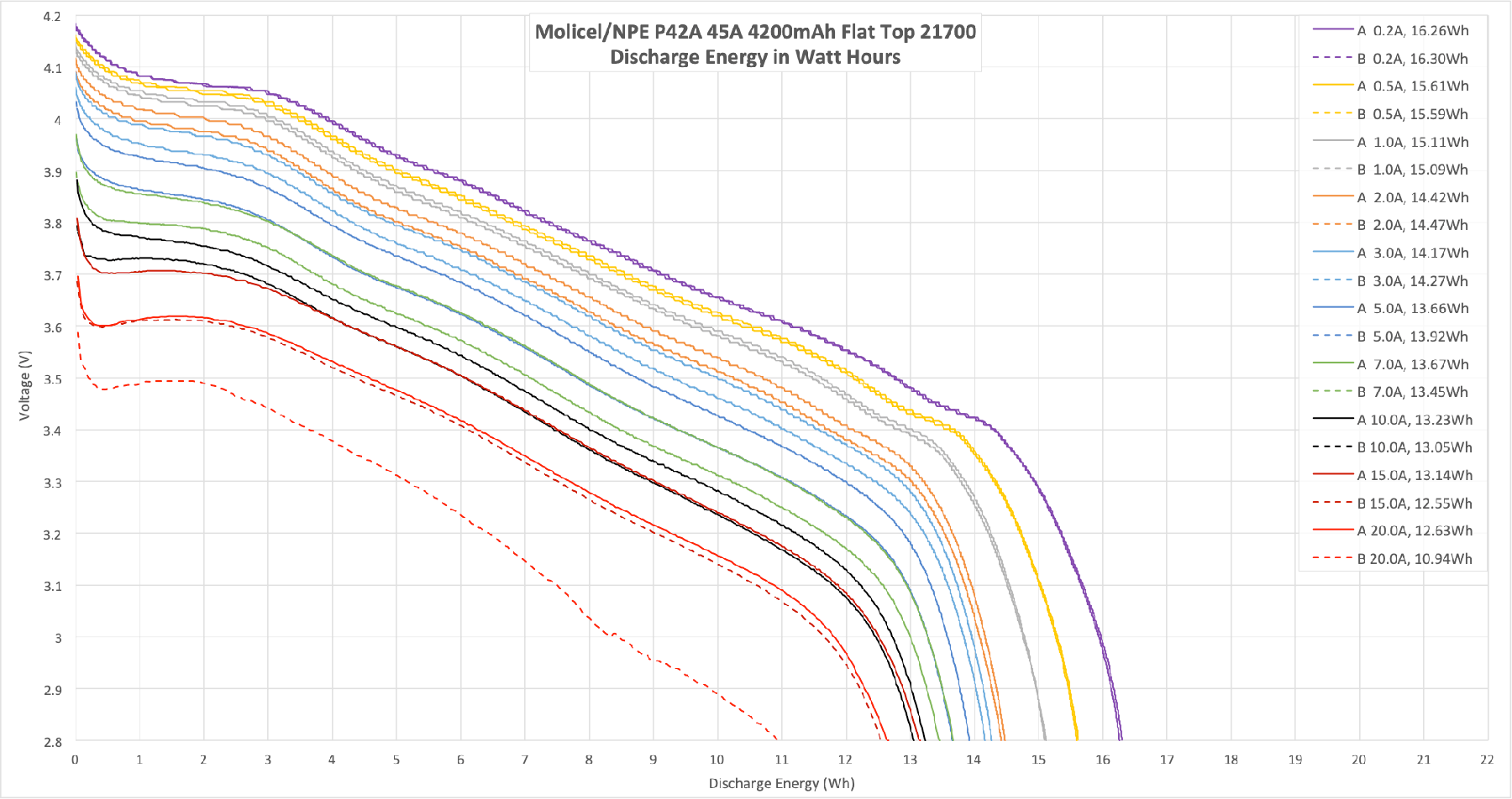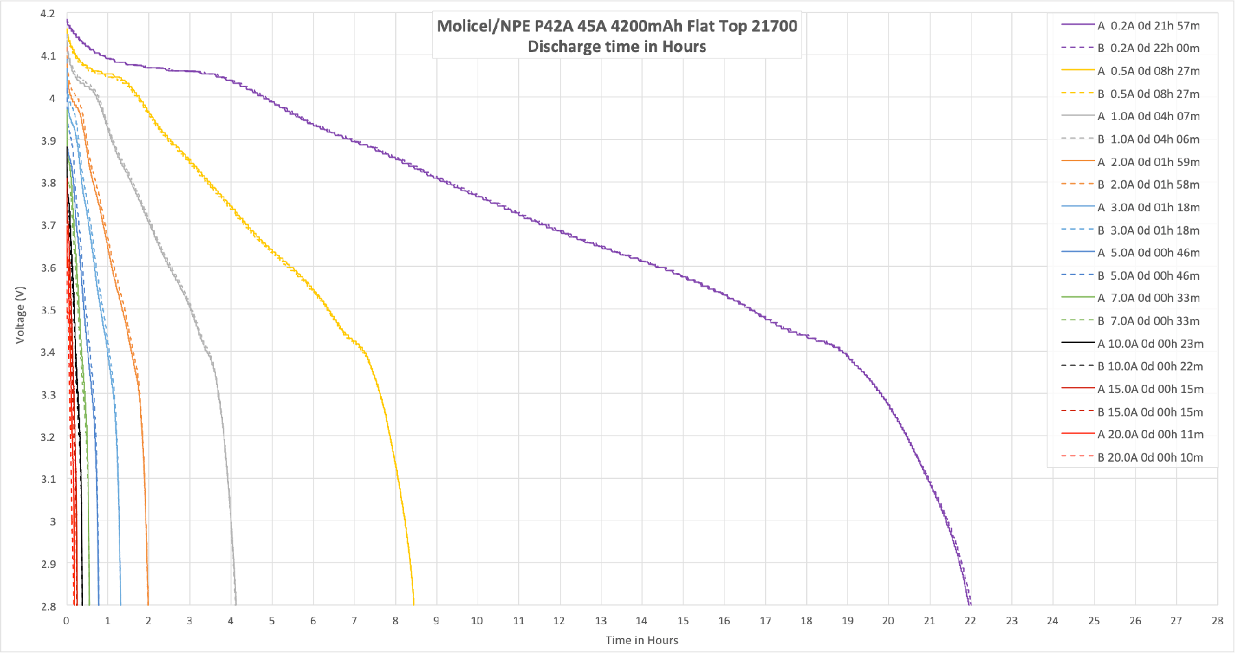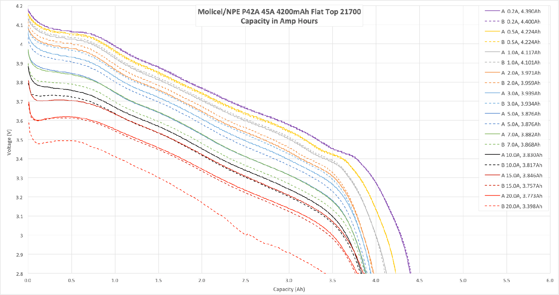 The Molicel/NPE P42A Lithium-Ion is a 4200mAh cell with a massive current capability – up to 45 amps! The capacity is around 4200mAh. Read on!