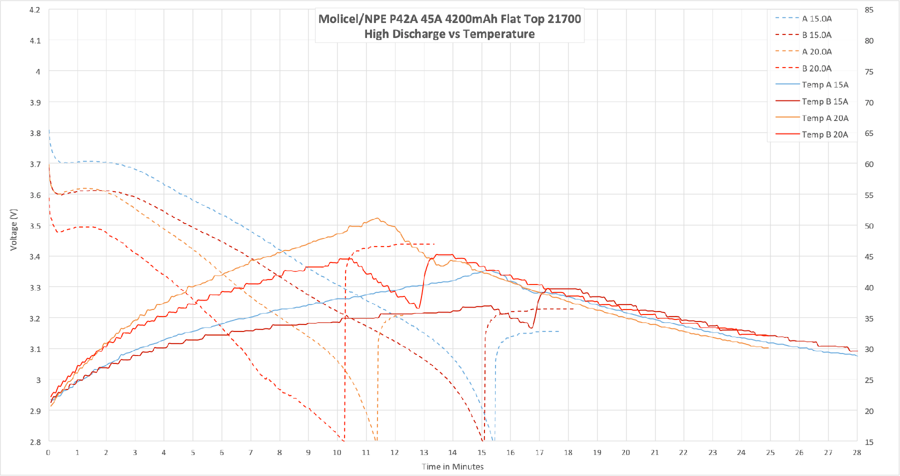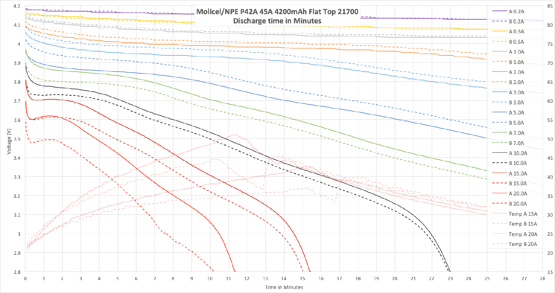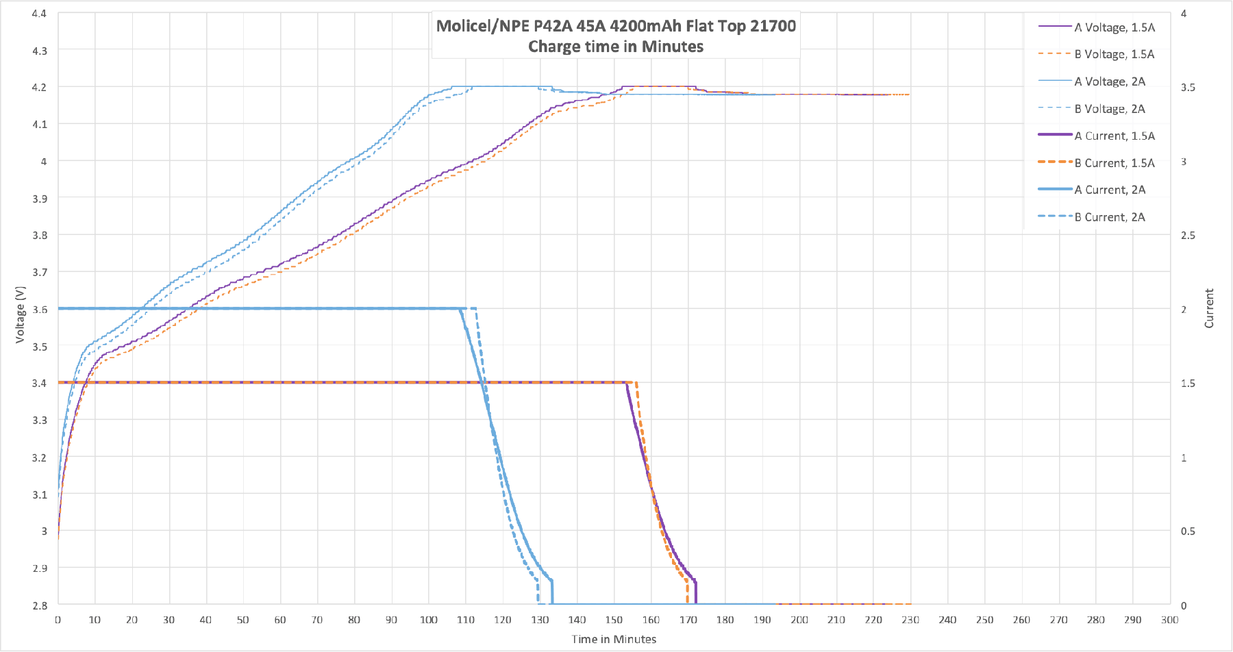 The Molicel/NPE P42A Lithium-Ion is a 4200mAh cell with a massive current capability – up to 45 amps! The capacity is around 4200mAh. Read on!