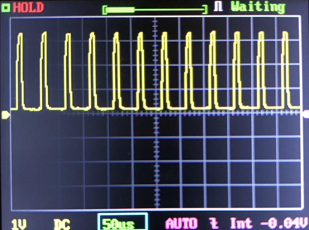 Looking at the graphs below you may say “wow PWM all the way to turbo???” Yes, but no. Look at the scale: 50us. That’s MUCH faster than anyone will ever be able to see. This is as close to “good PWM” as I’ll ever agree. It’s completely unnoticeable.