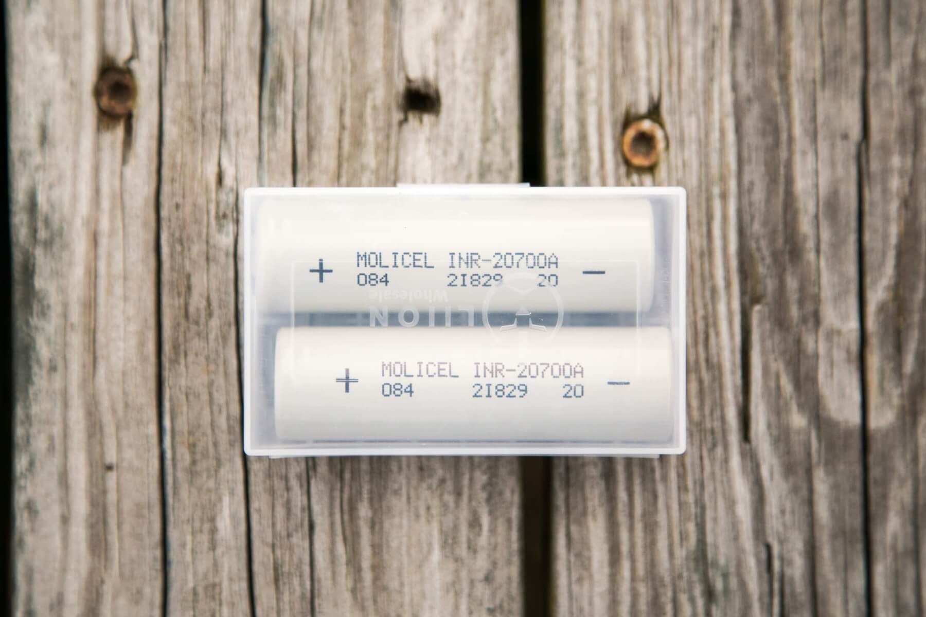 These are wrapped in the standard Molicel primer-grey wrapper. All the sizes of Molicel have this same wrapper. It could be a little confusing, but the size is printed right there on the side. Also printed on the side is a “+” and “-“, which is a nice touch.
