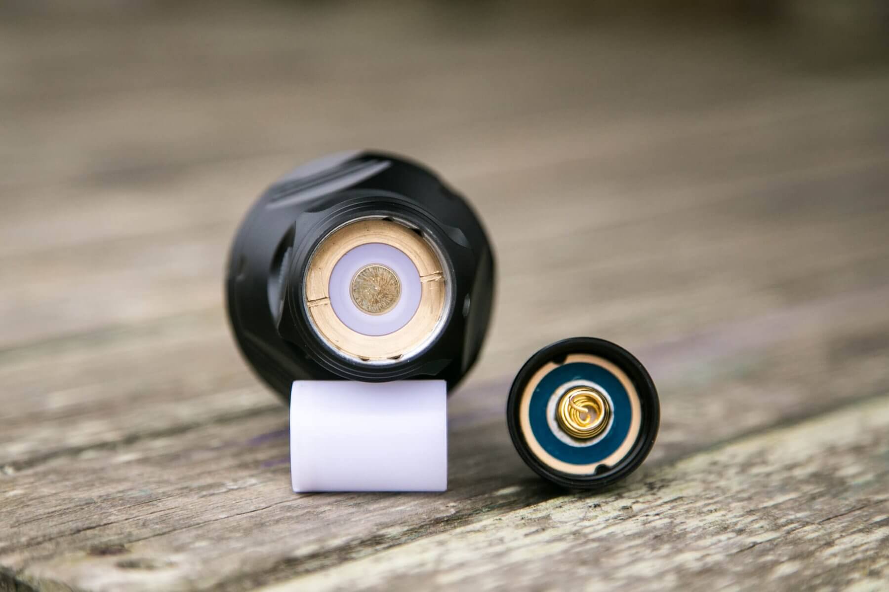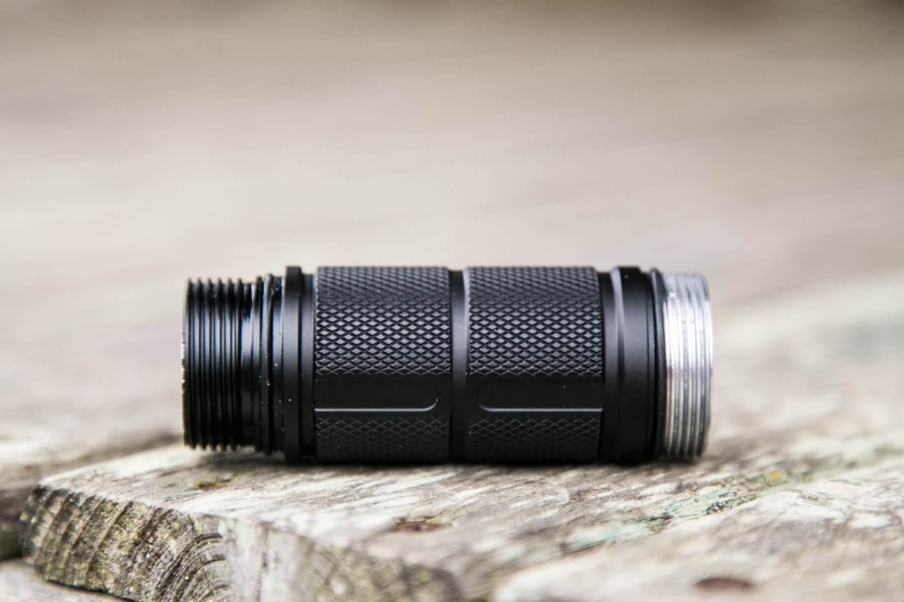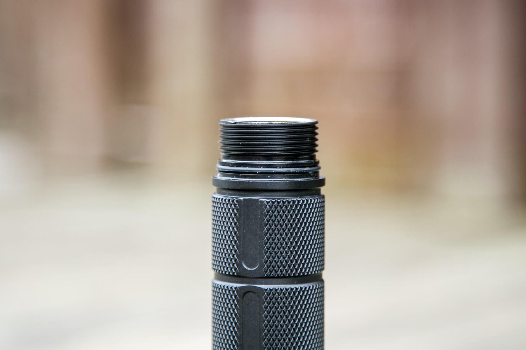 The cell tube is directional, with the head end being bigger and unanodized. The tail end is anodized for easy mechanical lockout. Also, both ends have square-cut threads. To be honest, the threads on this light are very nice.