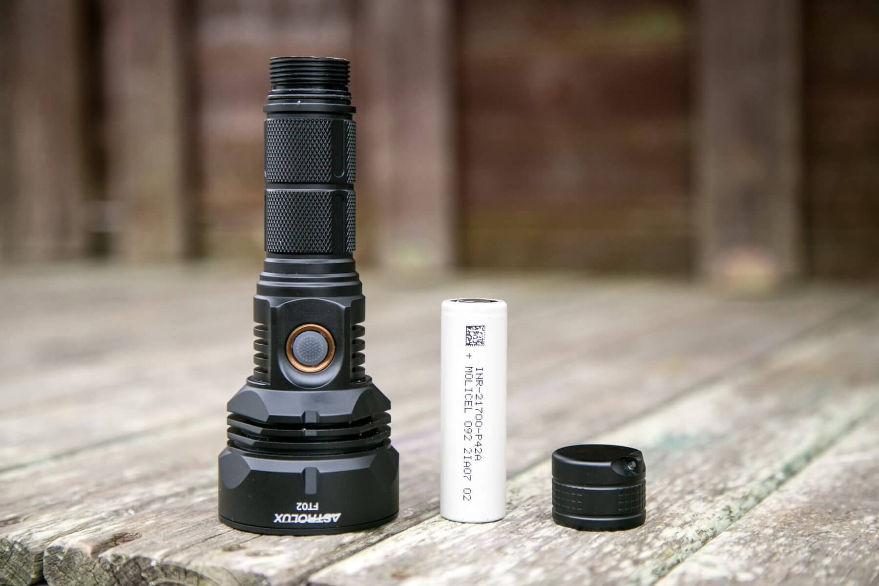 The Astrolux FT02 flashlight is a 18650 flashlight that runs a single 21700 and has a Cree XHP35 HI. The indicating e-switch rounds out the package.