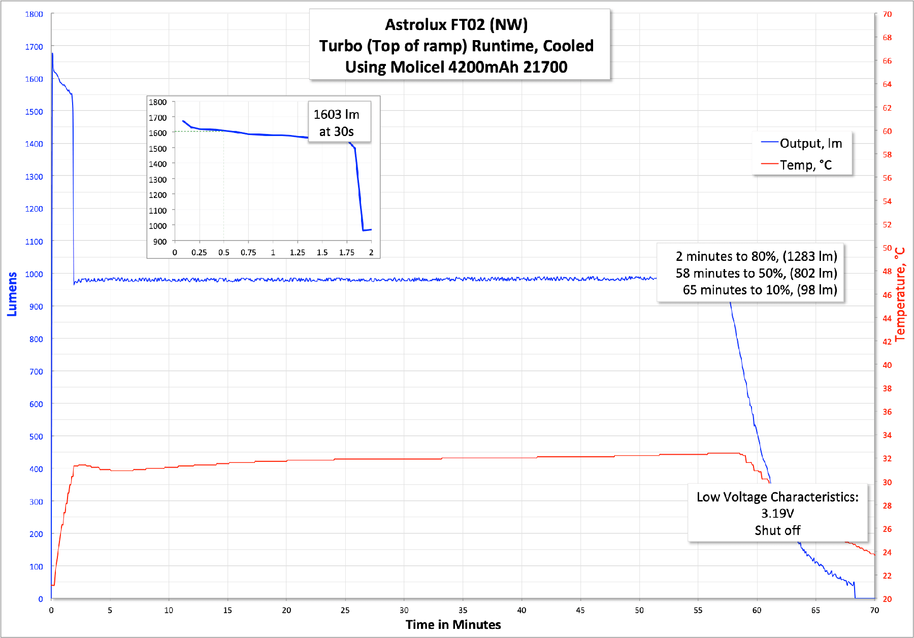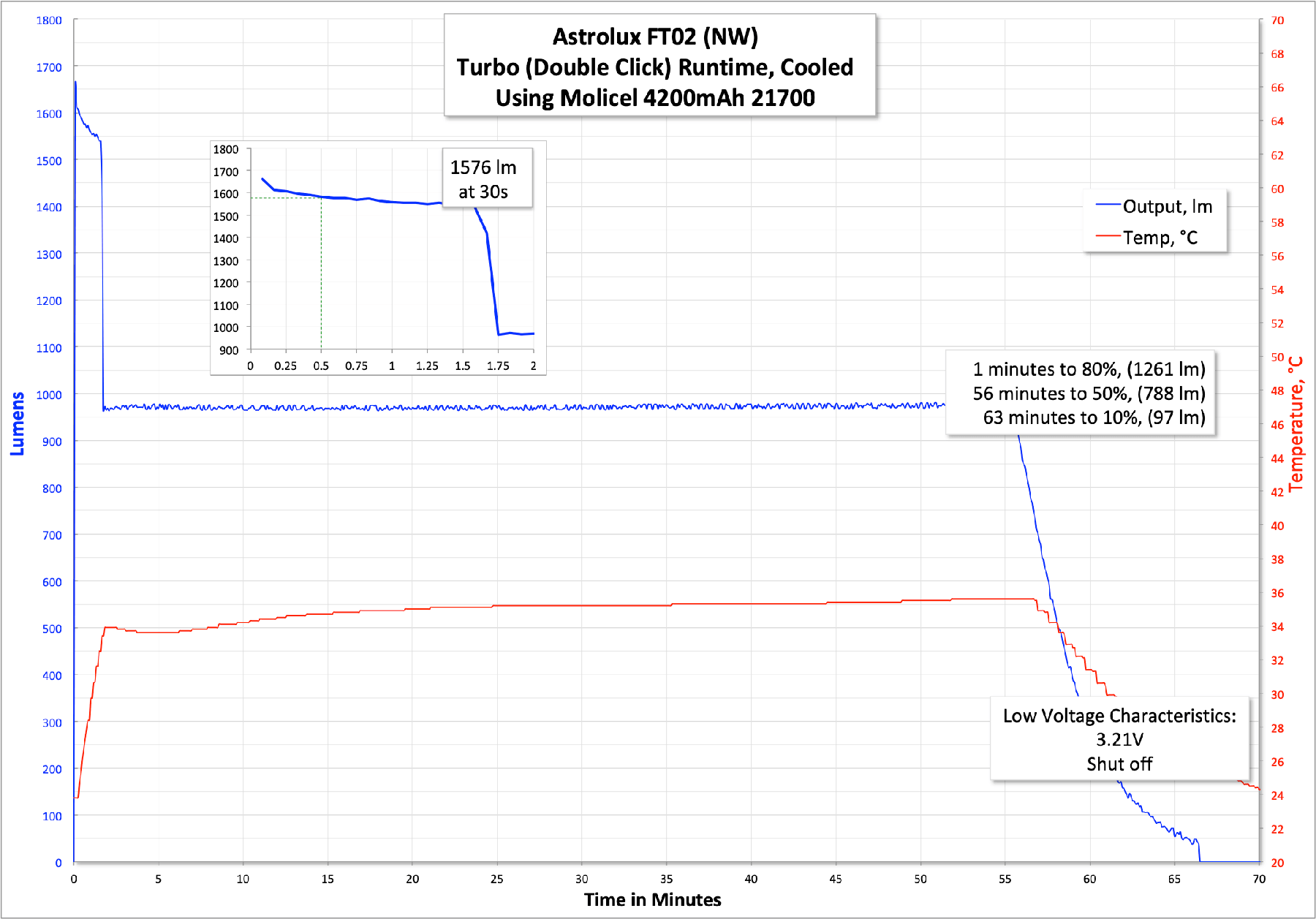 I tested the light two ways since it has a ramping user interface and no steps. I tested both ways to access Turbo. So the runtimes are (or should be) the same, but Turbo was entered in different ways. On some ramping lights, double click is Turbo turbo, but the top of the ramp is not quite Turbo.