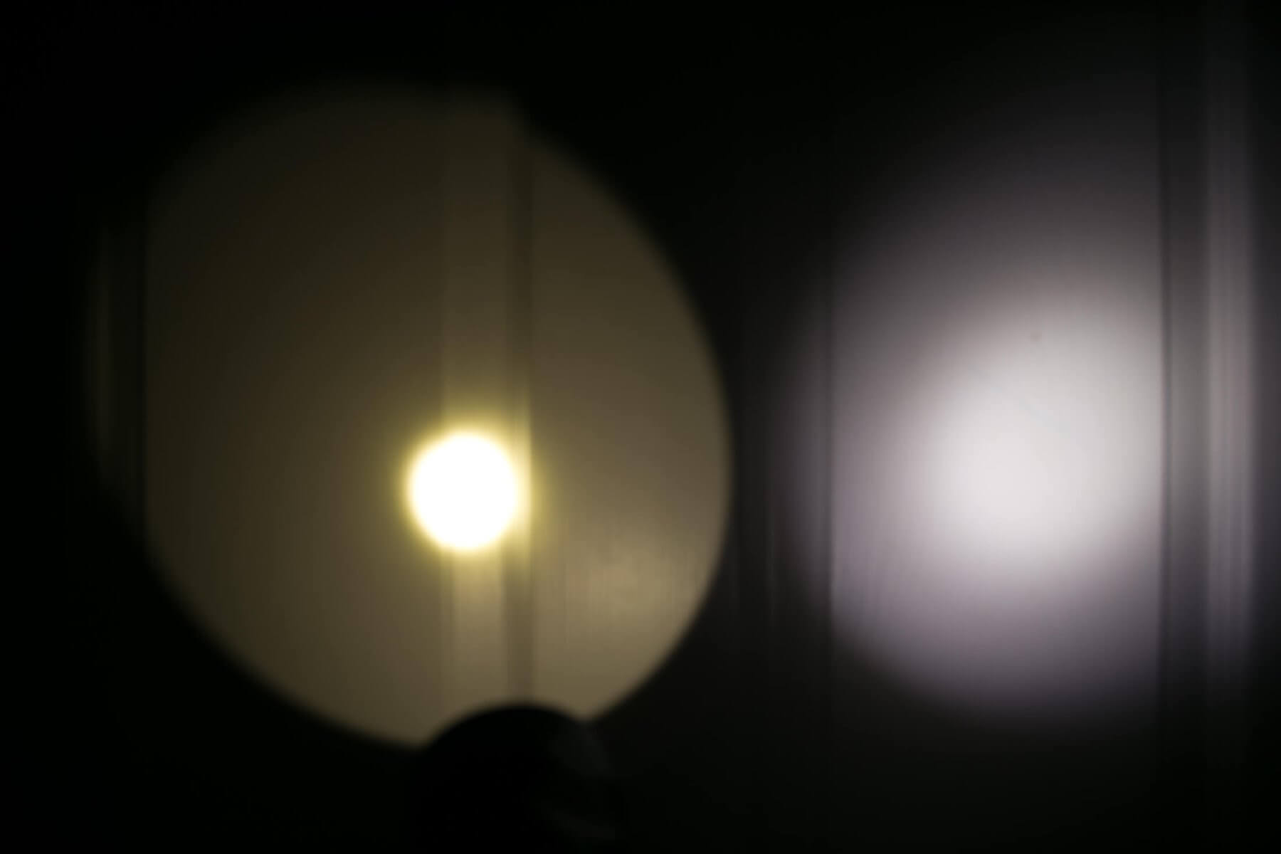 These beamshots always have the following settings: f8, ISO100, 0.3s shutter, and manual 5000K exposure. These photos are taken at floor level, and the beam hits the ceiling around 9 feet away. This is just a sampling of the outputs along the ramp.
